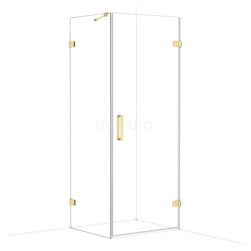 Diamond Douchecabine | 80x70 cm Glanzend lichtgoud Helder glas Draaideur Rechthoek