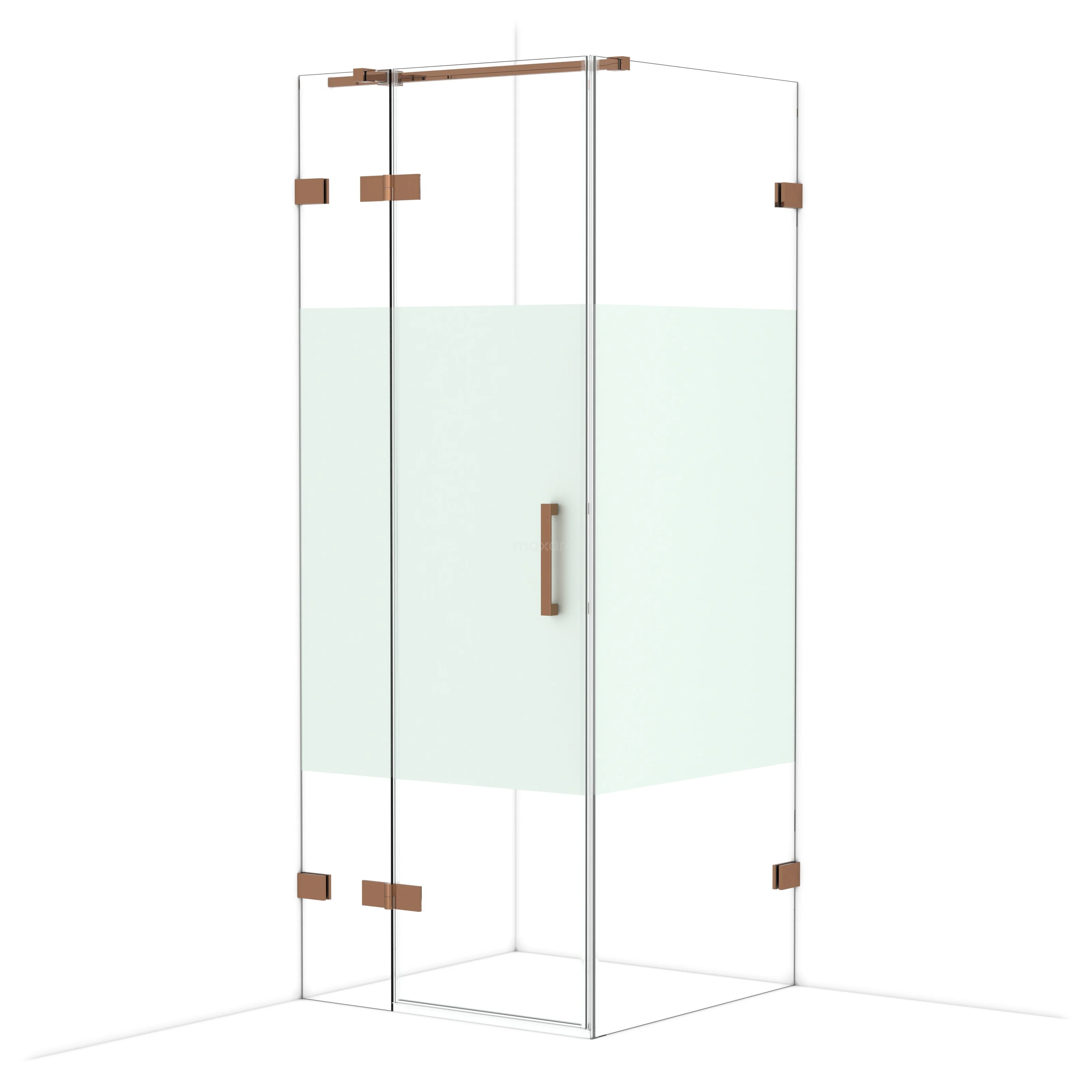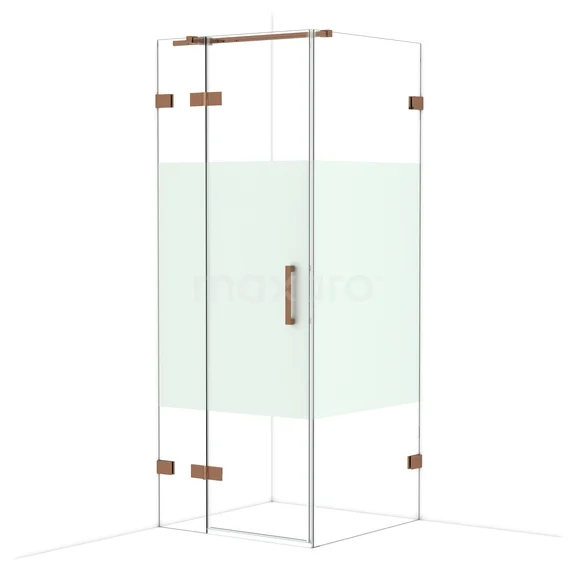 Diamond Douchecabine | 80x80 cm Glanzend koper Helder met matte strook Draaideur Vierkant