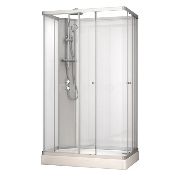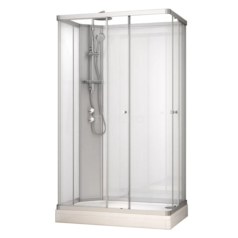 De complete douchecabine uit de Modera-serie staat garant voor ultiem doucheplezier. Deze cabine is van alle gemakken voorzien en volledig uitgerust met vaste achterwanden, glazen schuifdeuren, een douchebak en een thermostatische kraan met hand- en regendouche. Hierdoor is deze douchecabine een geweldige vervanger voor uw huidige douche.