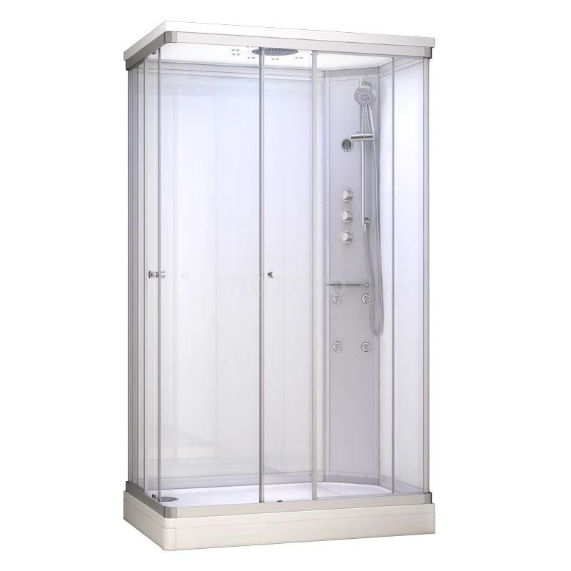 Modera Volledige Douchecabine | 120x80 cm Wit glas Schuifdeur Rechthoek