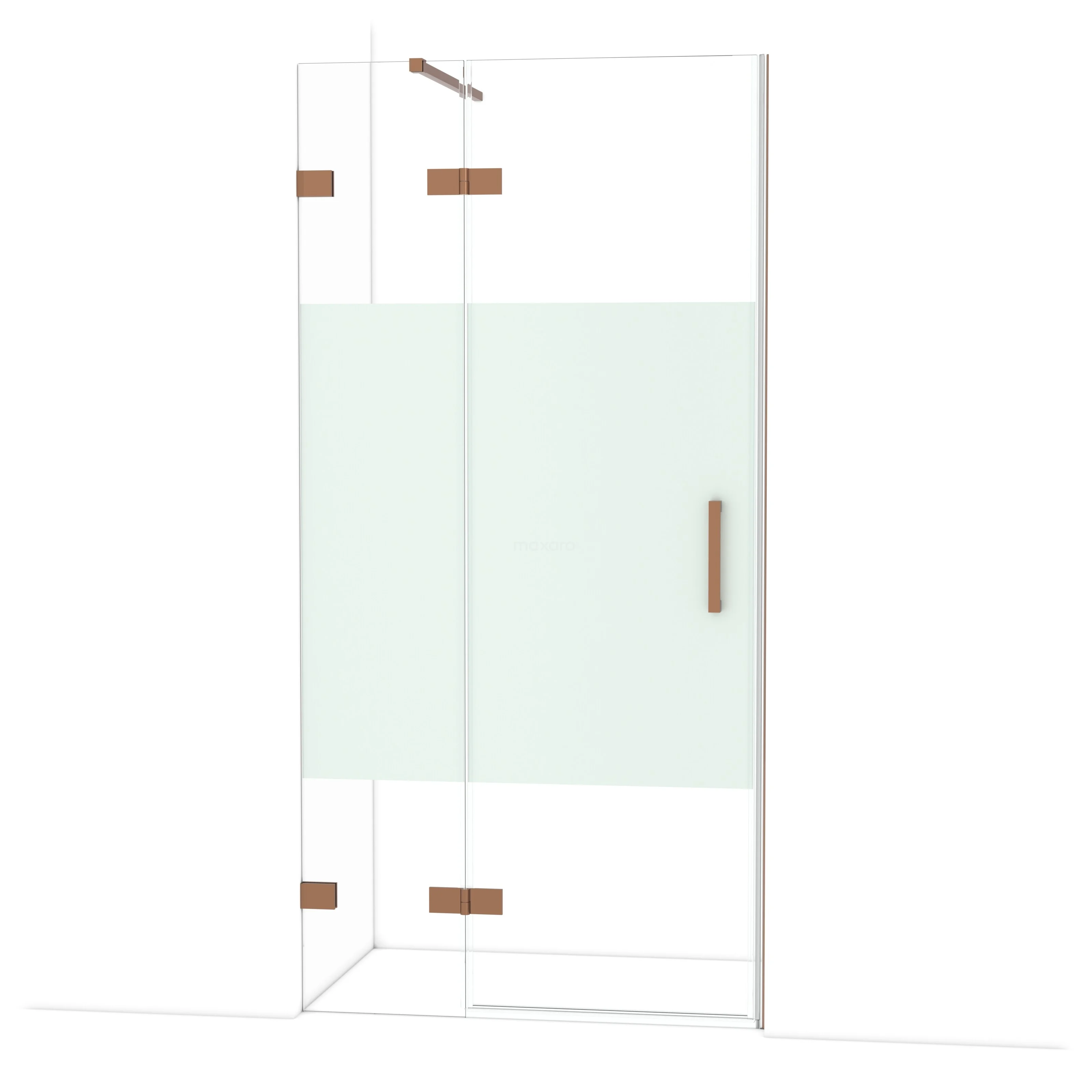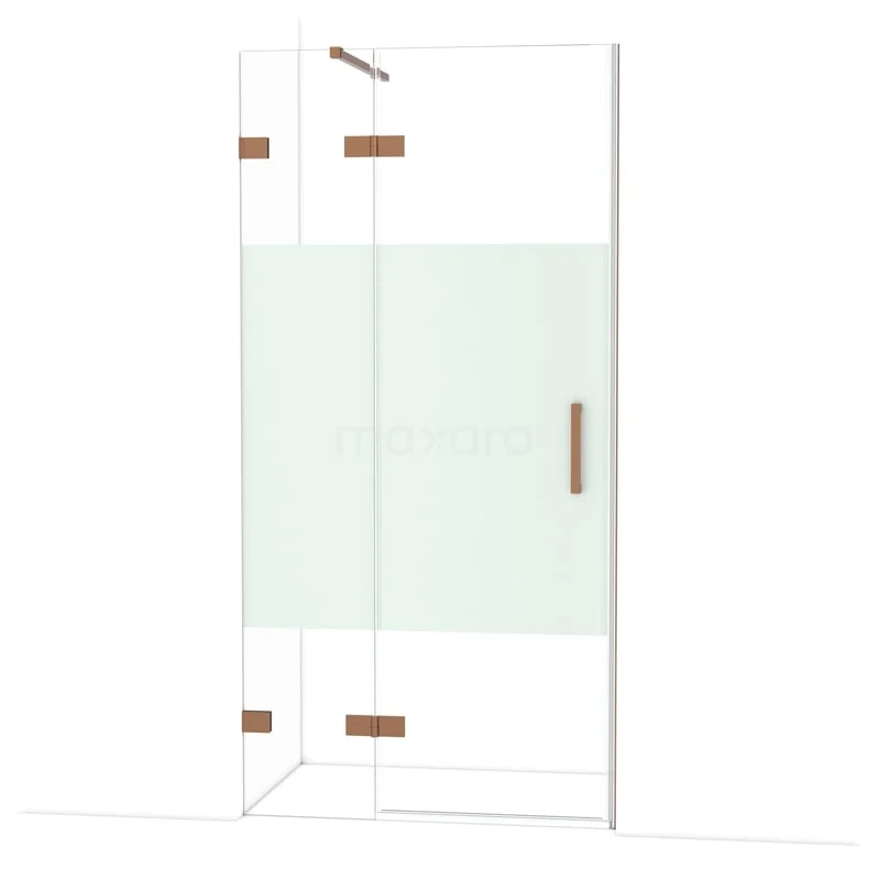 Diamond Douchedeur | 100 cm Glanzend koper Helder met matte strook Draaideur