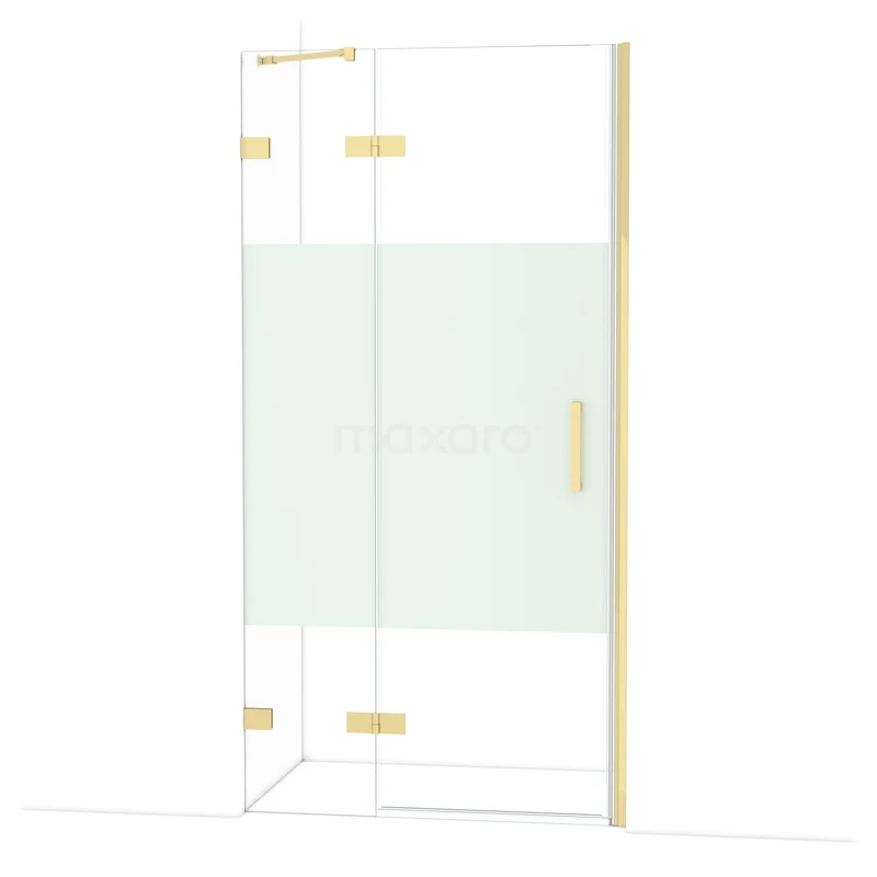 Diamond Douchedeur | 100 cm Glanzend lichtgoud Helder met matte strook Draaideur