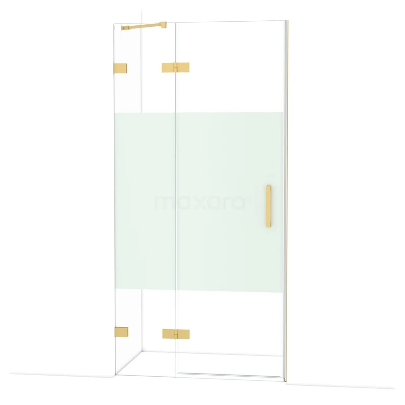 De Diamond-draaideur van 100 cm is ideaal om jouw douchenis af te sluiten. Dit exemplaar heeft een luxe design van goud en is voorzien van hoogwaardige scharnieren, tweepuntsbevestiging en een verticaal handvat. Het helder glas met matte strook zorgt voor meer privacy. Door de verstelbaarheid maak je de douchedeur gemakkelijk passend. De totale breedte is verstelbaar van 99,7 tot en met 100 cm.