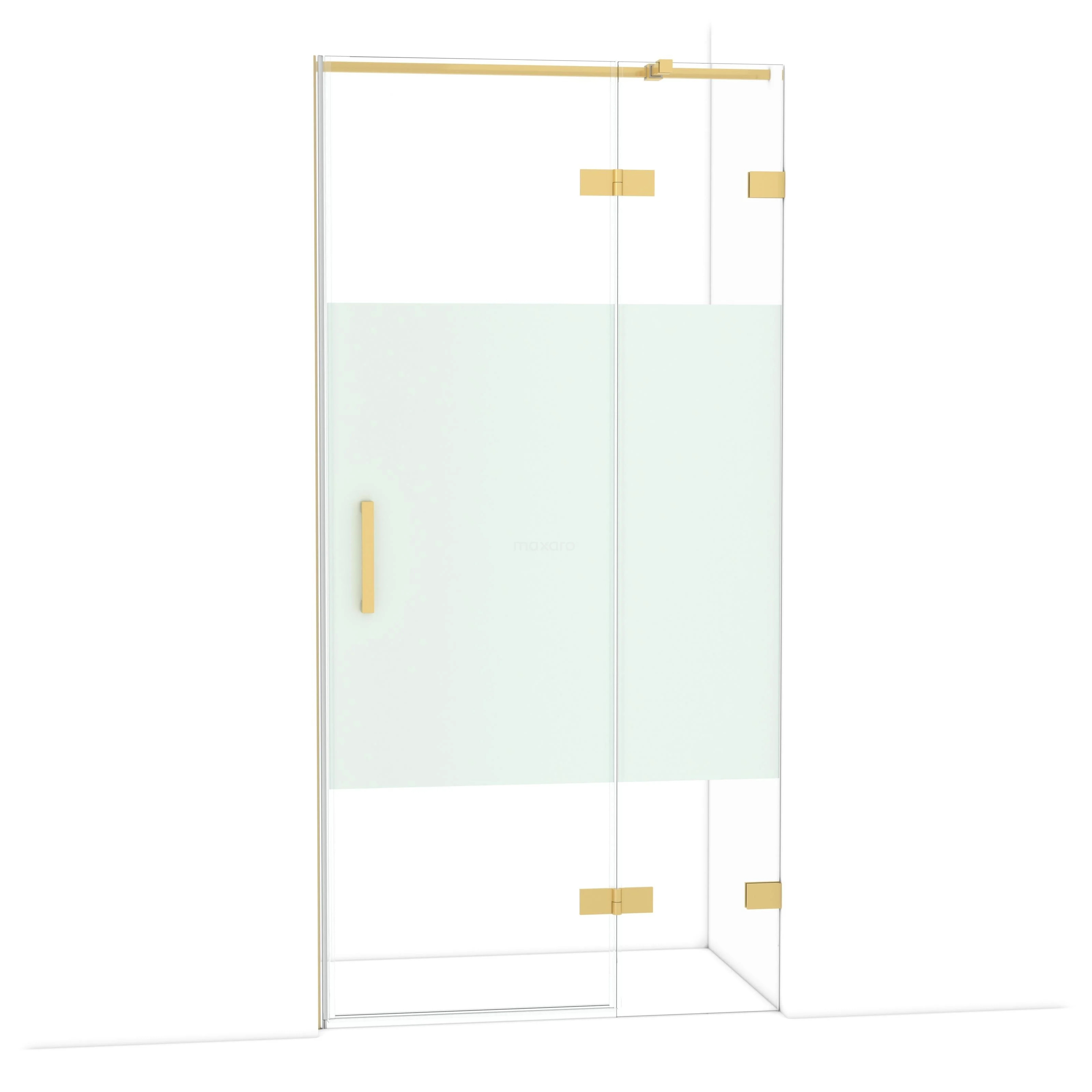 De Diamond-draaideur van 100 cm is ideaal om jouw douchenis af te sluiten. Dit exemplaar heeft een luxe design van goud en is voorzien van hoogwaardige scharnieren, tweepuntsbevestiging en een verticaal handvat. Het helder glas met matte strook zorgt voor meer privacy. Door de verstelbaarheid maak je de douchedeur gemakkelijk passend. De totale breedte is verstelbaar van 99,7 tot en met 100 cm.