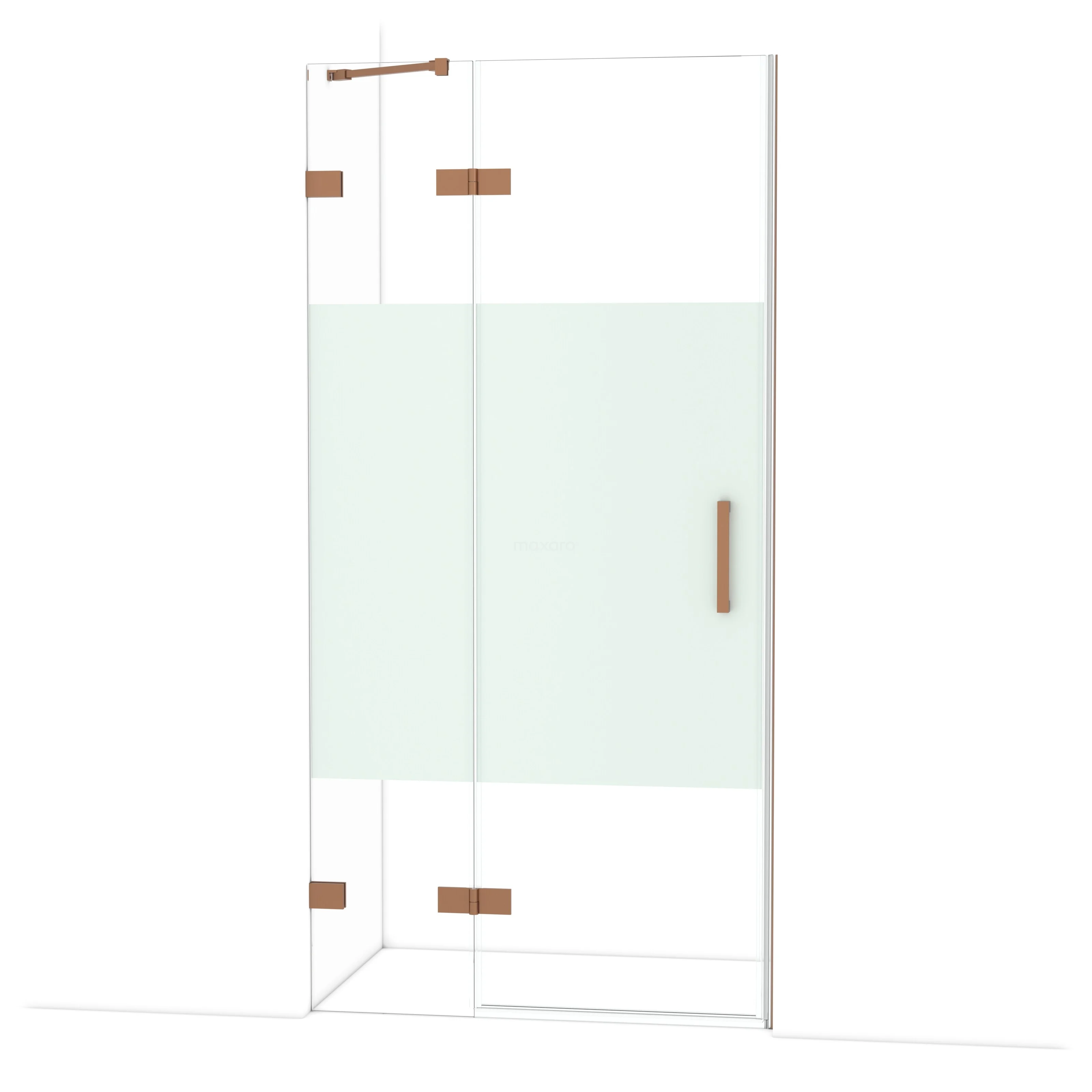 De Diamond-draaideur van 100 cm is ideaal om jouw douchenis af te sluiten. Dit exemplaar is afgewerkt in koper en is voorzien van hoogwaardige scharnieren, tweepuntsbevestiging en een verticaal handvat. Het helder glas met matte strook zorgt voor meer privacy. Door de verstelbaarheid maak je de douchedeur gemakkelijk passend. De totale breedte is verstelbaar van 99,7 tot en met 100 cm.