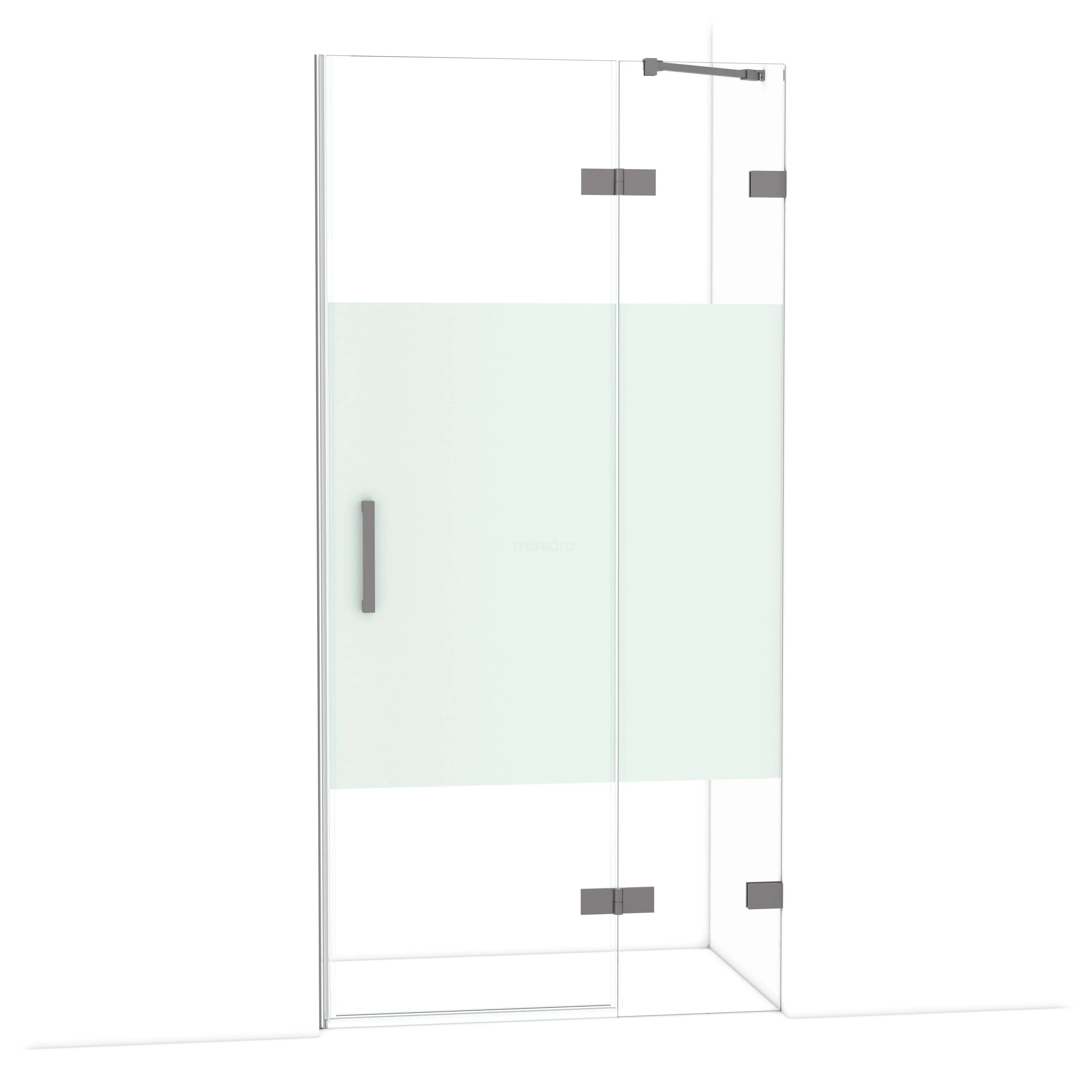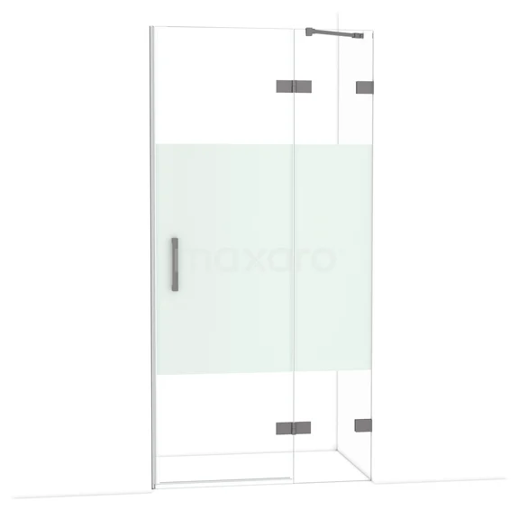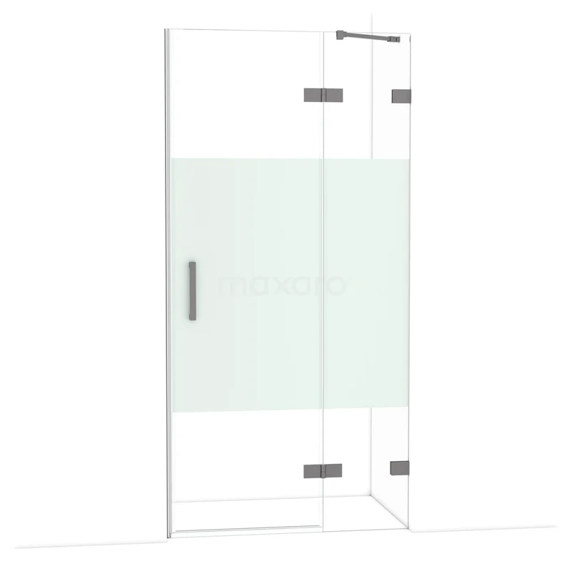 Diamond Douchedeur | 100 cm Zwart metaal Helder met matte strook Draaideur