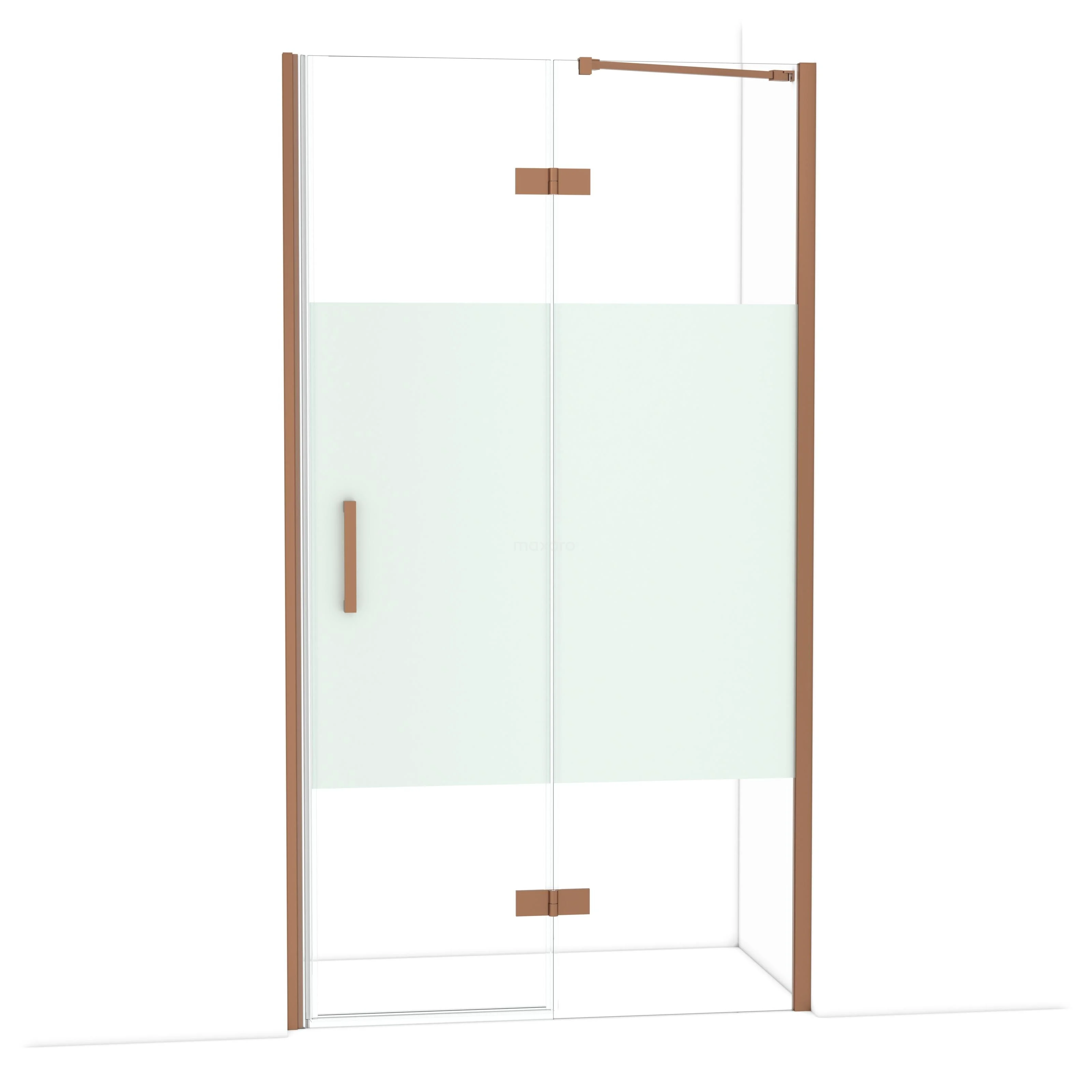 De Diamond-draaideur van 110 cm is ideaal om jouw douchenis af te sluiten. Dit exemplaar is afgewerkt in koper en is voorzien van hoogwaardige scharnieren, muurprofiel en een verticaal handvat. Het helder glas met matte strook zorgt voor meer privacy. Door de verstelbaarheid maak je de douchedeur gemakkelijk passend. De totale breedte is verstelbaar van 111,8 tot en met 114 cm.