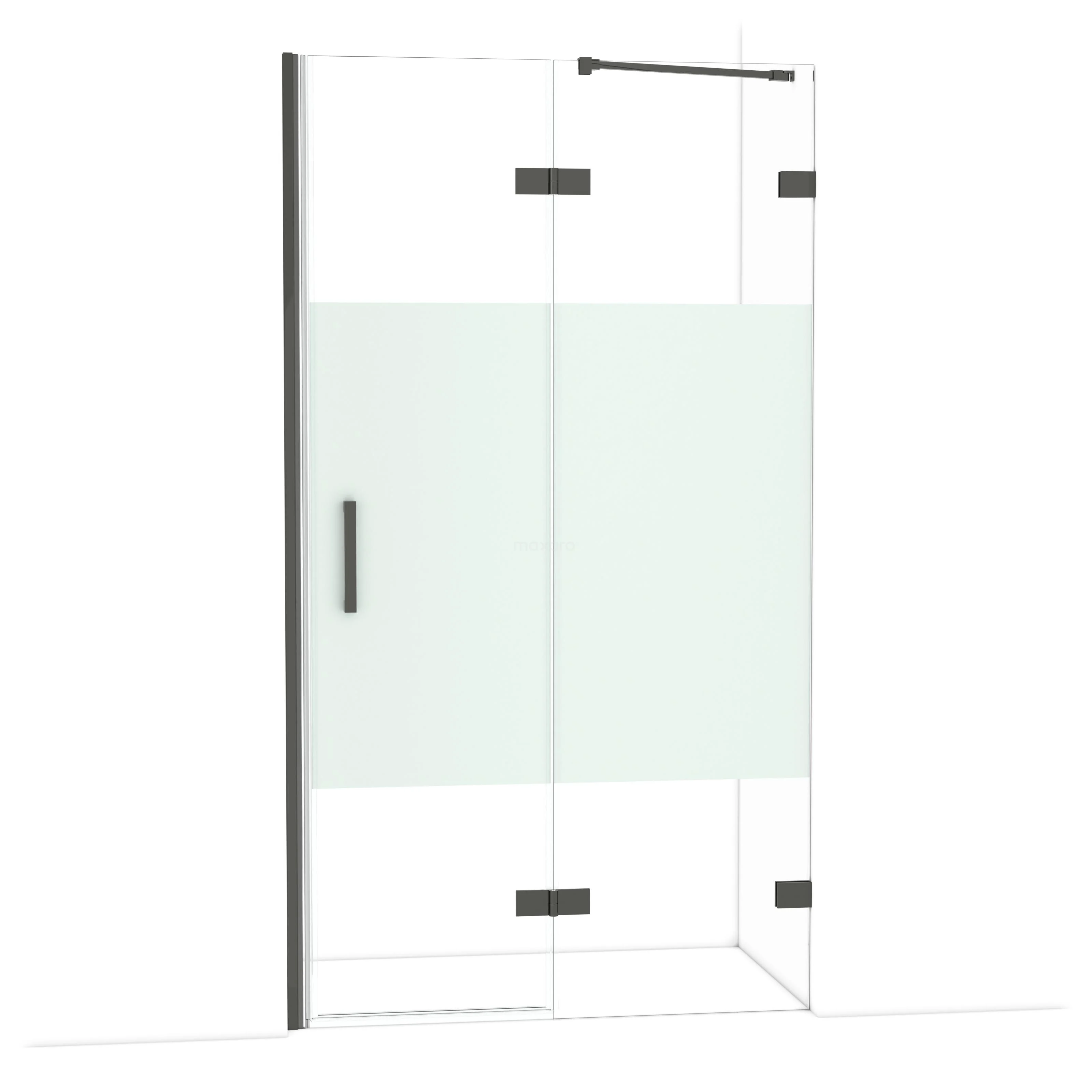 De Diamond-draaideur van 110 cm is ideaal om jouw douchenis af te sluiten. Dit exemplaar is afgewerkt in zwart chroom en is voorzien van hoogwaardige scharnieren, tweepuntsbevestiging en een verticaal handvat. Het helder glas met matte strook zorgt voor meer privacy. Door de verstelbaarheid maak je de douchedeur gemakkelijk passend. De totale breedte is verstelbaar van 111,7 tot en met 112,7 cm.