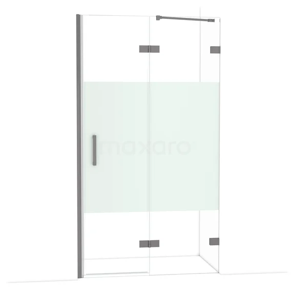 Diamond Douchedeur | 110 cm Zwart metaal Helder met matte strook Draaideur