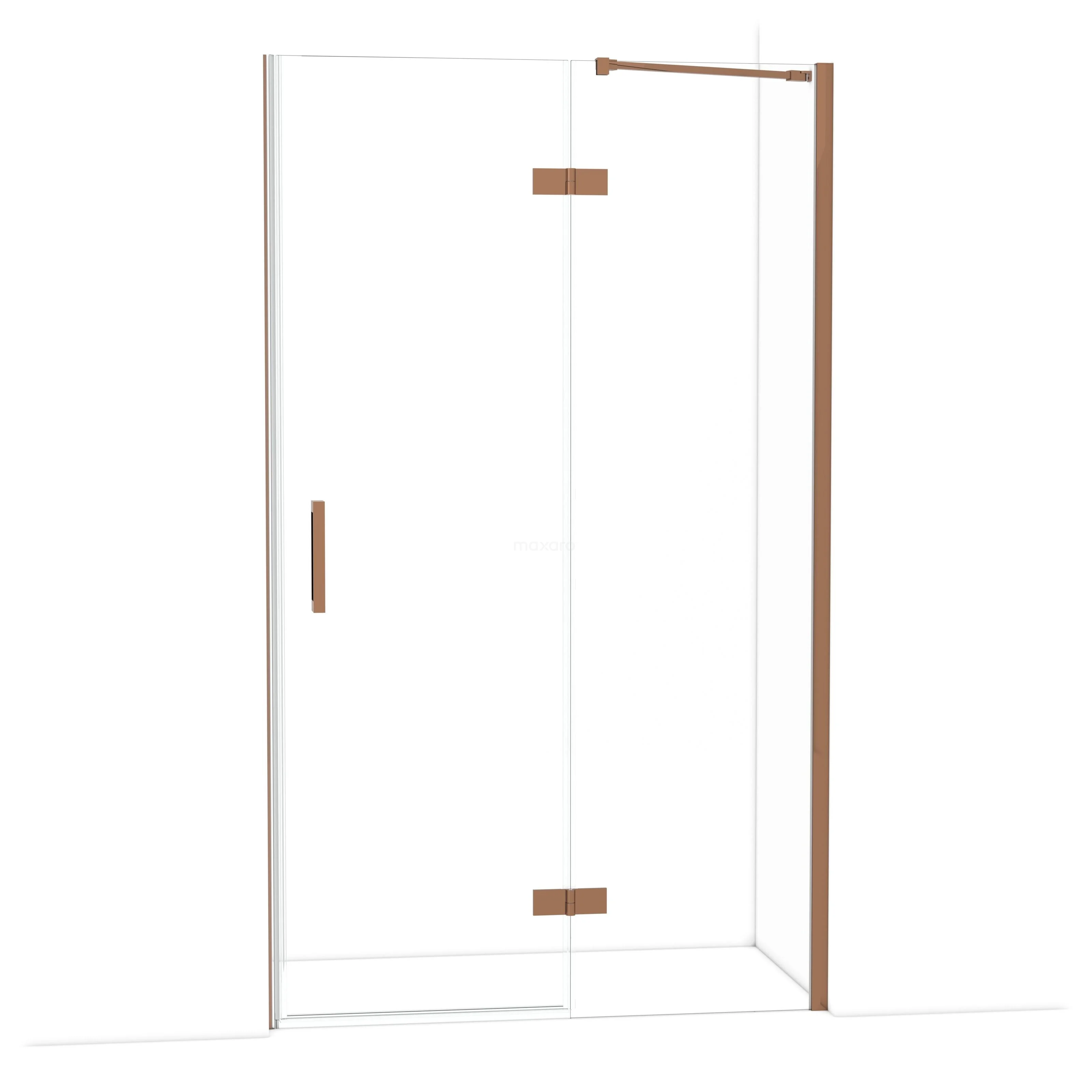 De Diamond-draaideur van 120 cm is ideaal om jouw douchenis af te sluiten. Dit exemplaar heeft een opvallend design van glanzend koper en is voorzien van hoogwaardige scharnieren, muurprofiel en een verticaal handvat. Het helder glas zorgt voor een ruimtelijk gevoel. Door de verstelbaarheid maak je de douchedeur gemakkelijk passend. De totale breedte is verstelbaar van 119,8 tot en met 121,3 cm.
