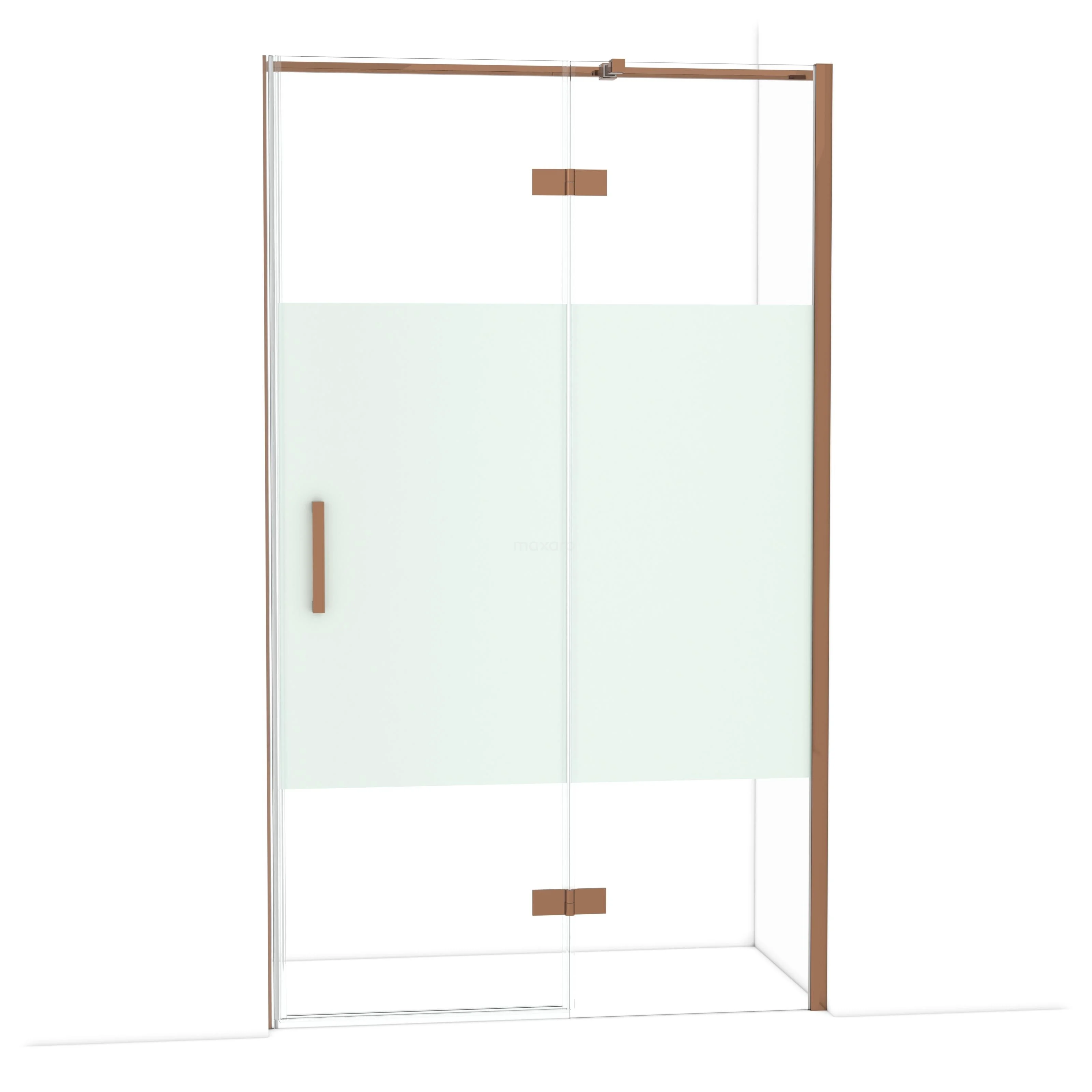 De Diamond-draaideur van 120 cm is ideaal om jouw douchenis af te sluiten. Dit exemplaar heeft een opvallend design van glanzend koper en is voorzien van hoogwaardige scharnieren, muurprofiel en een verticaal handvat. Het helder glas met matte strook zorgt voor meer privacy. Door de verstelbaarheid maak je de douchedeur gemakkelijk passend. De totale breedte is verstelbaar van 119,8 tot en met 121,3 cm.