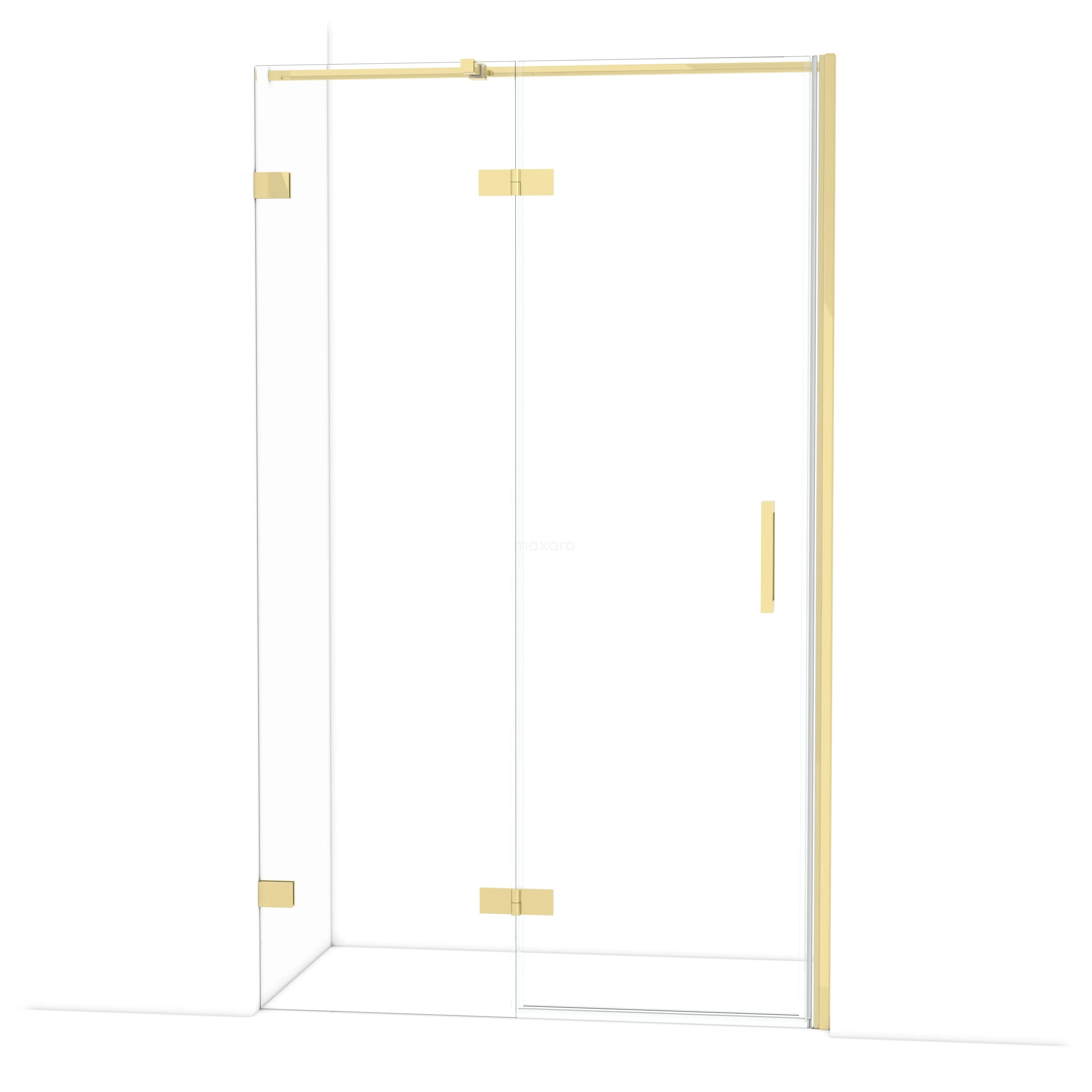 De Diamond-draaideur van 120 cm is ideaal om jouw douchenis af te sluiten. Dit exemplaar heeft een verfijnd en luxe design van glanzend lichtgoud en is voorzien van hoogwaardige scharnieren, tweepuntsbevestiging en een verticaal handvat. Het helder glas zorgt voor een ruimtelijk gevoel. Door de verstelbaarheid maak je de douchedeur gemakkelijk passend. De totale breedte is verstelbaar van 121,7 tot en met 122,7 cm.