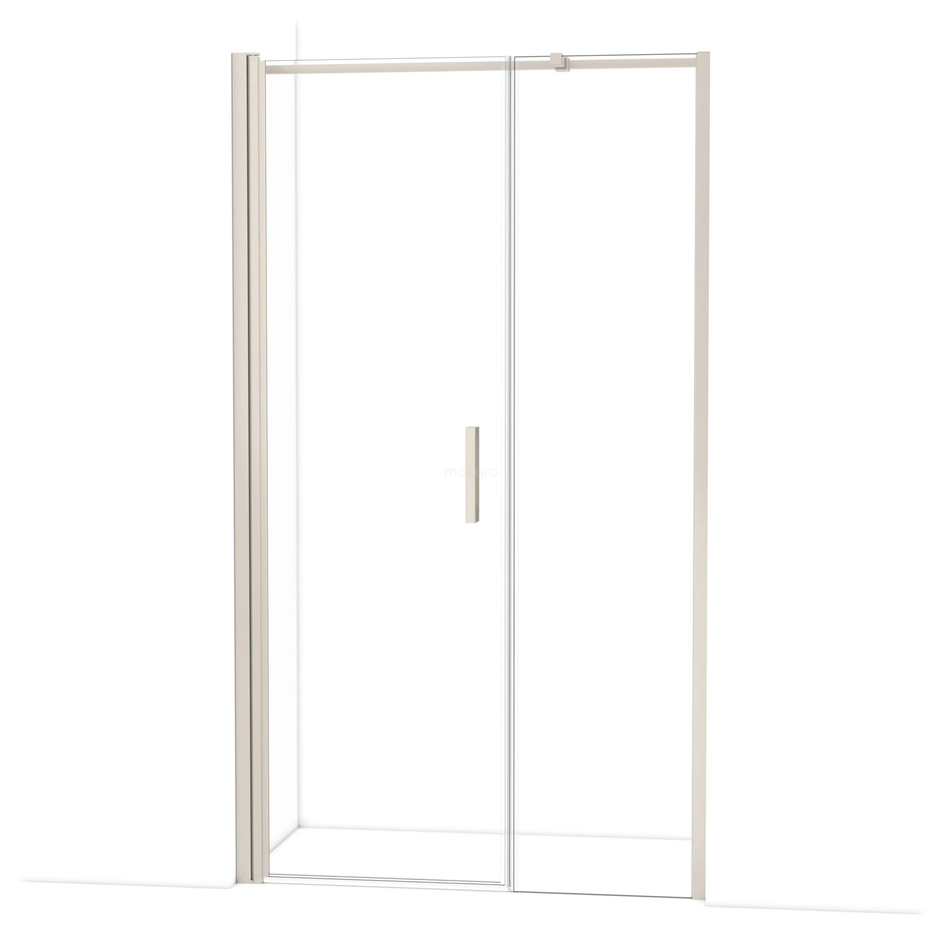 De douchedeur beschikt over een verstelbaarheid, waardoor deze een minimale en maximale afmeting heeft. De minimale en maximale afmeting van een douche met muurprofiel wordt gemeten inclusief het muurprofiel. De minimale en maximale afmeting van een douche met tweepuntsbevestiging wordt gemeten inclusief het glas.