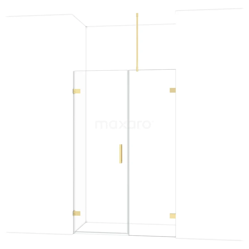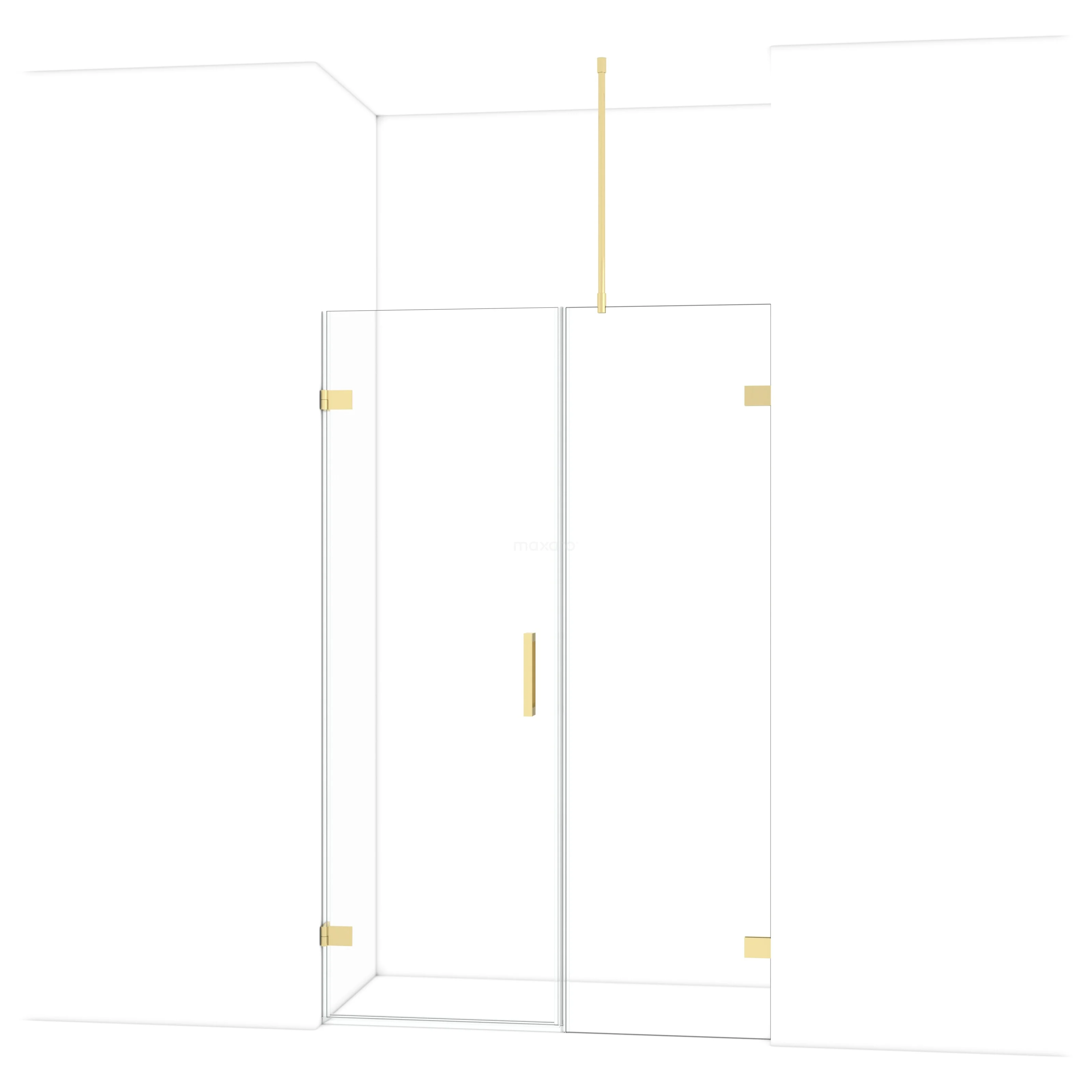 Diamond Douchedeur | 125 cm Glanzend lichtgoud Helder glas Draaideur