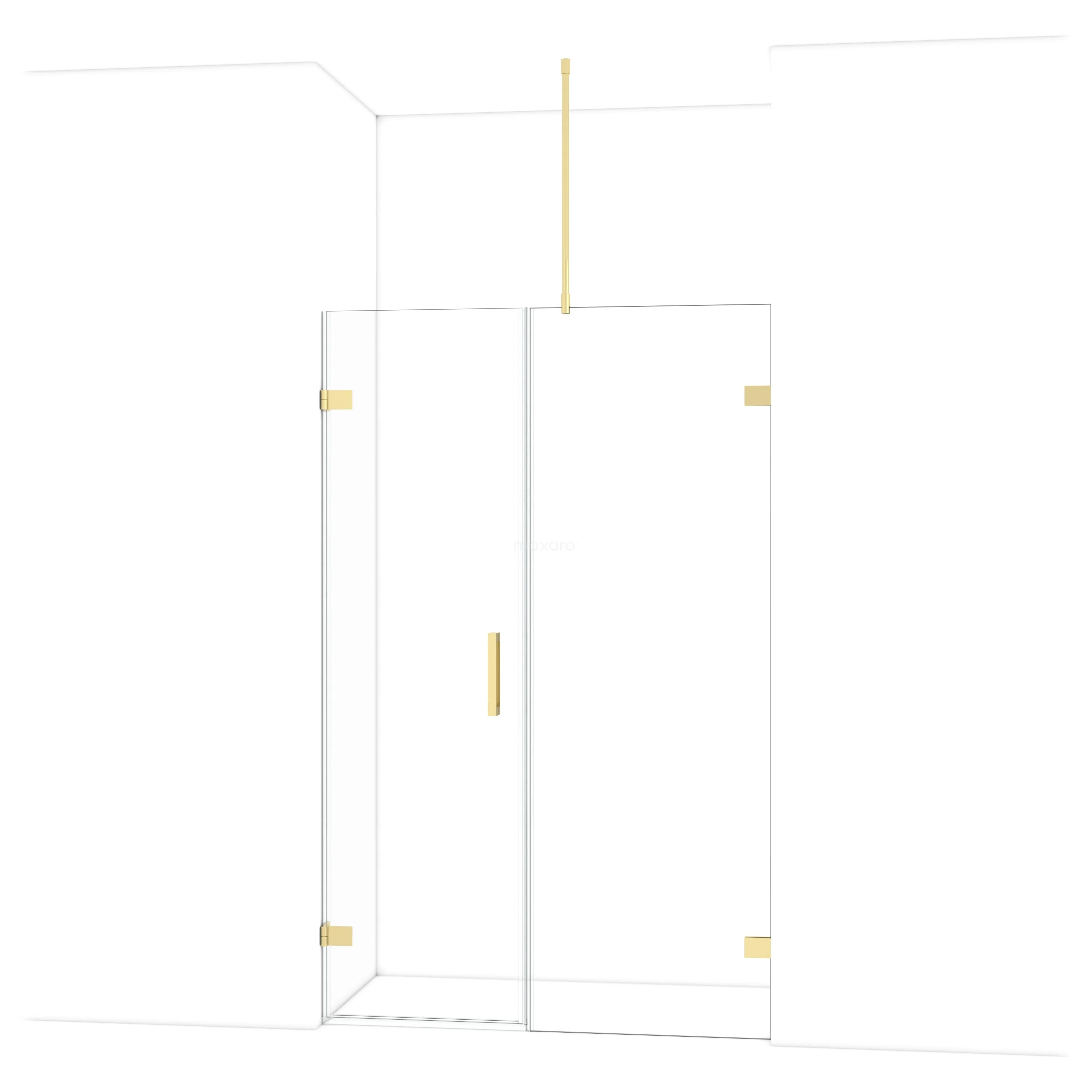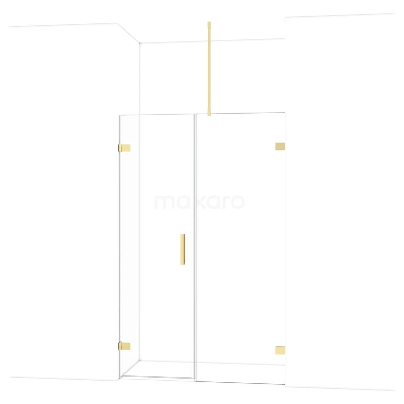 Diamond Douchedeur | 125 cm Glanzend lichtgoud Helder glas Draaideur
