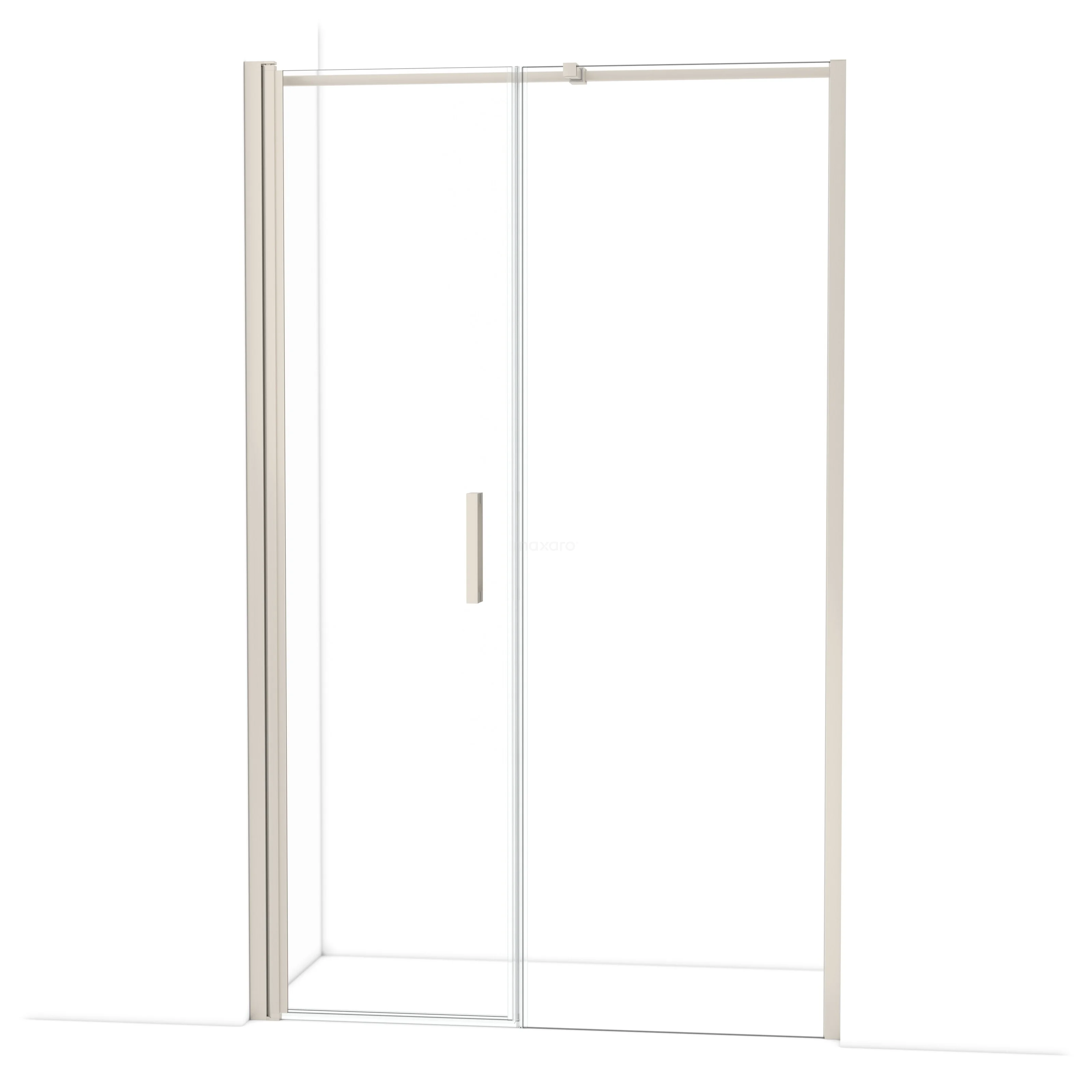 De douchedeur beschikt over een verstelbaarheid, waardoor deze een minimale en maximale afmeting heeft. De minimale en maximale afmeting van een douche met muurprofiel wordt gemeten inclusief het muurprofiel. De minimale en maximale afmeting van een douche met tweepuntsbevestiging wordt gemeten inclusief het glas.