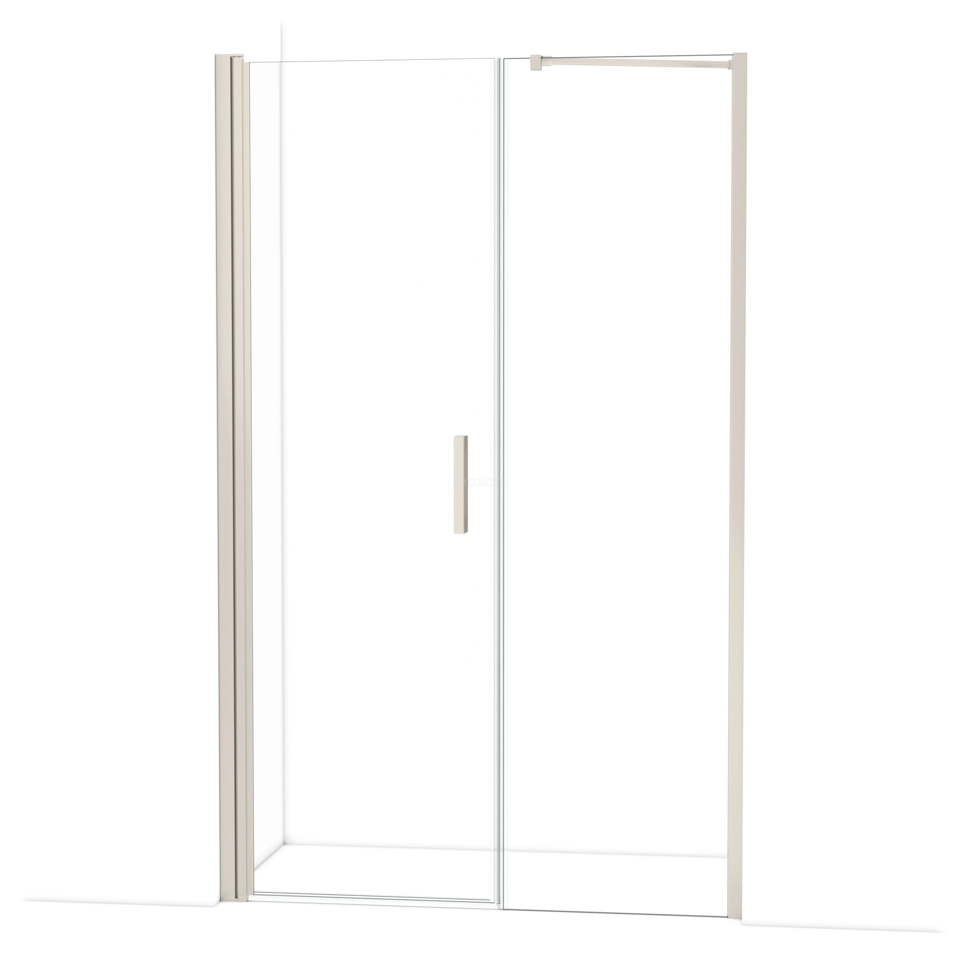 De douchedeur beschikt over een verstelbaarheid, waardoor deze een minimale en maximale afmeting heeft. De minimale en maximale afmeting van een douche met muurprofiel wordt gemeten inclusief het muurprofiel. De minimale en maximale afmeting van een douche met tweepuntsbevestiging wordt gemeten inclusief het glas.