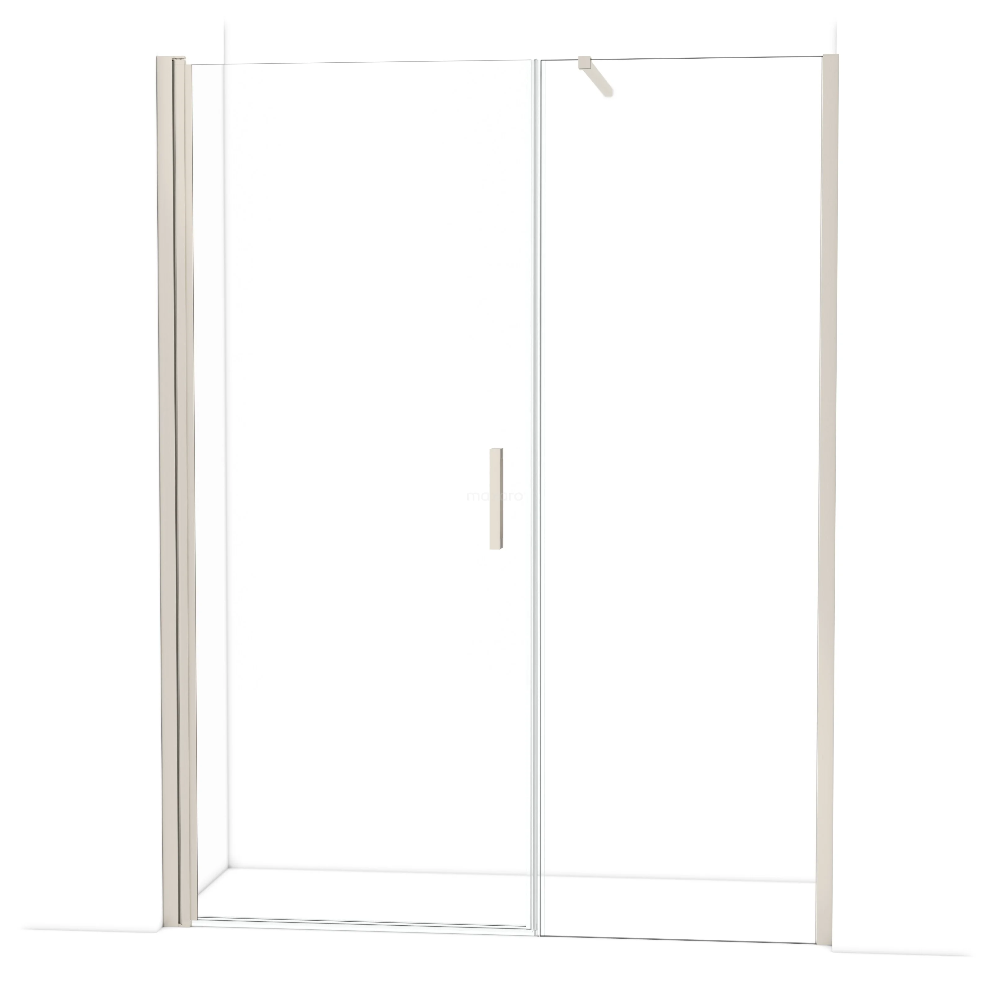 De douchedeur beschikt over een verstelbaarheid, waardoor deze een minimale en maximale afmeting heeft. De minimale en maximale afmeting van een douche met muurprofiel wordt gemeten inclusief het muurprofiel. De minimale en maximale afmeting van een douche met tweepuntsbevestiging wordt gemeten inclusief het glas.