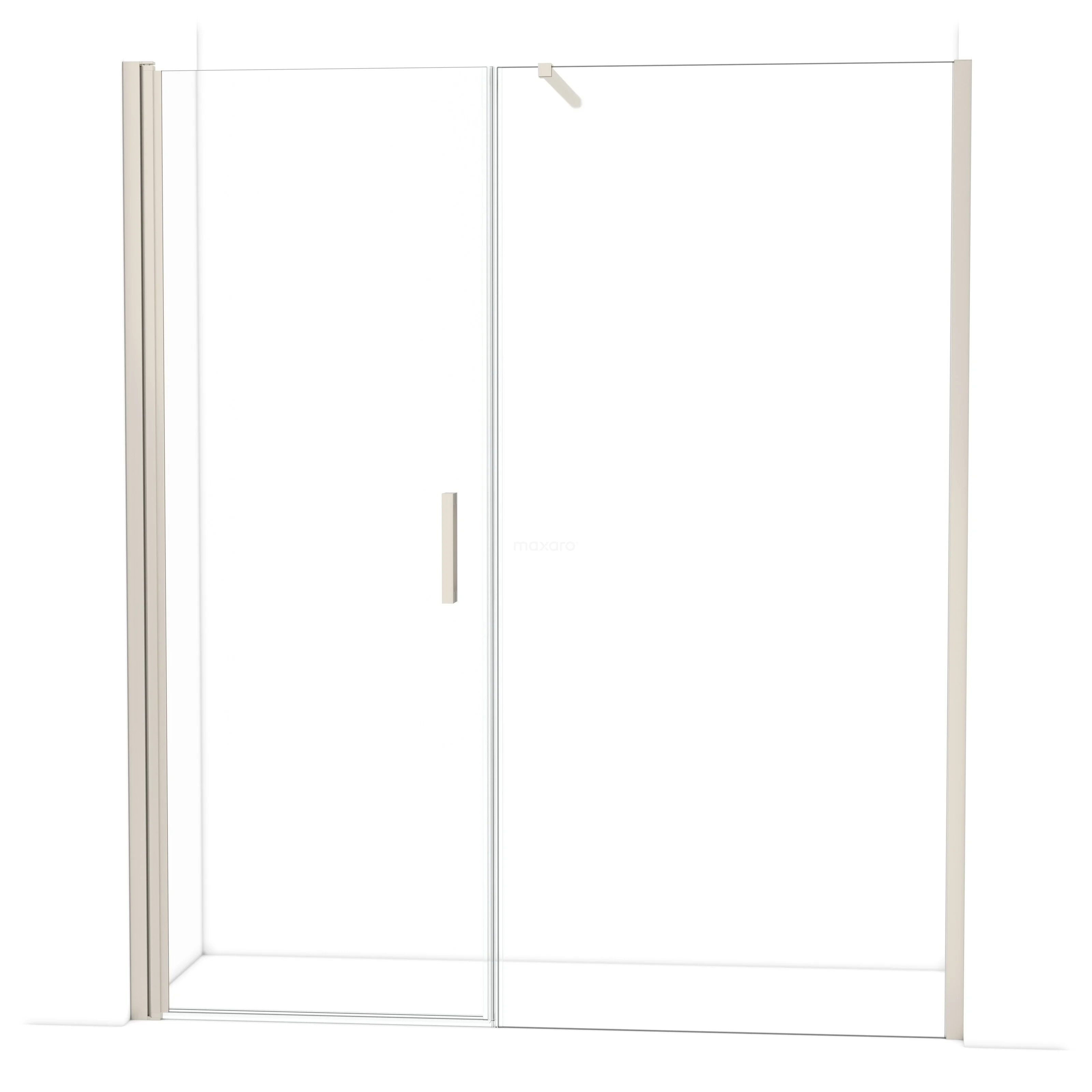 De douchedeur beschikt over een verstelbaarheid, waardoor deze een minimale en maximale afmeting heeft. De minimale en maximale afmeting van een douche met muurprofiel wordt gemeten inclusief het muurprofiel. De minimale en maximale afmeting van een douche met tweepuntsbevestiging wordt gemeten inclusief het glas.