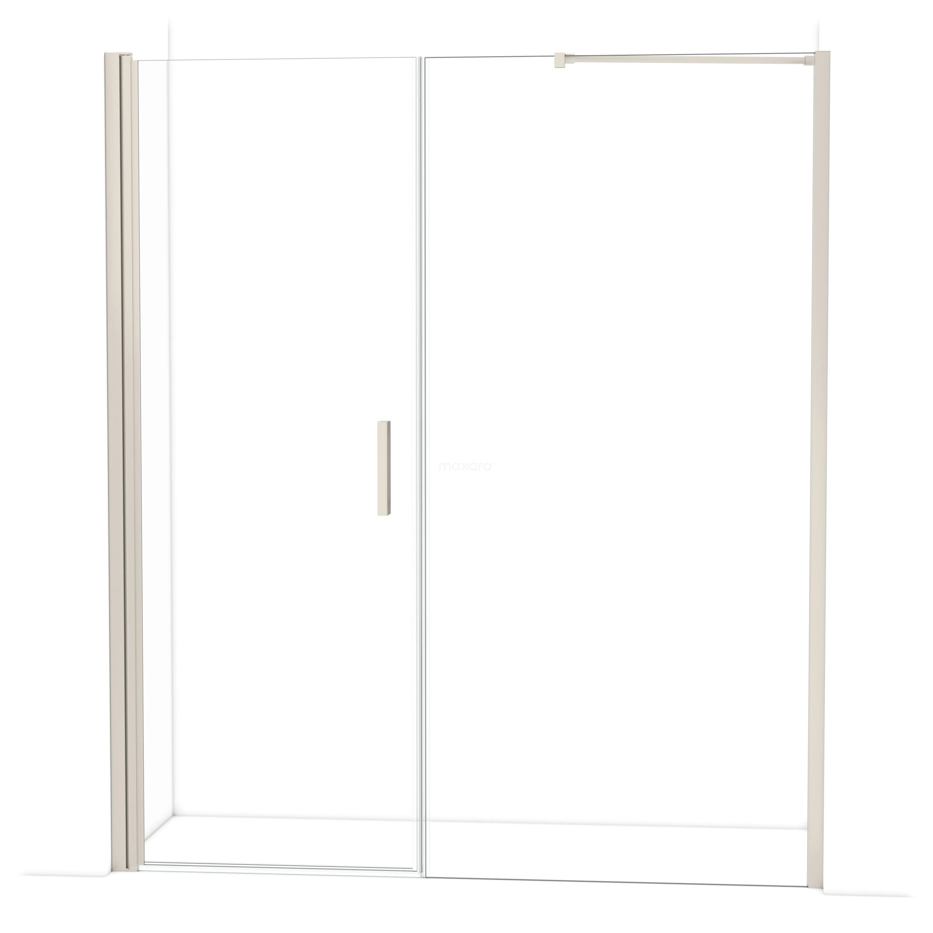 De douchedeur beschikt over een verstelbaarheid, waardoor deze een minimale en maximale afmeting heeft. De minimale en maximale afmeting van een douche met muurprofiel wordt gemeten inclusief het muurprofiel. De minimale en maximale afmeting van een douche met tweepuntsbevestiging wordt gemeten inclusief het glas.