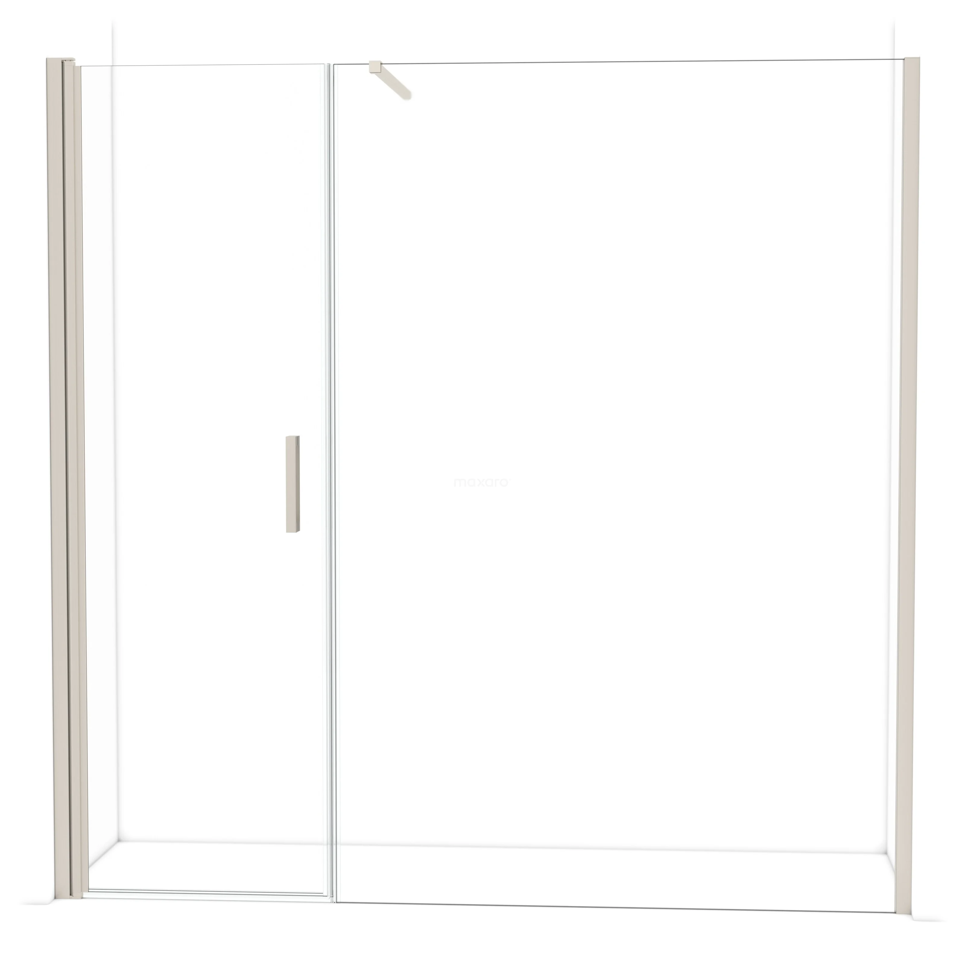 De douchedeur beschikt over een verstelbaarheid, waardoor deze een minimale en maximale afmeting heeft. De minimale en maximale afmeting van een douche met muurprofiel wordt gemeten inclusief het muurprofiel. De minimale en maximale afmeting van een douche met tweepuntsbevestiging wordt gemeten inclusief het glas.