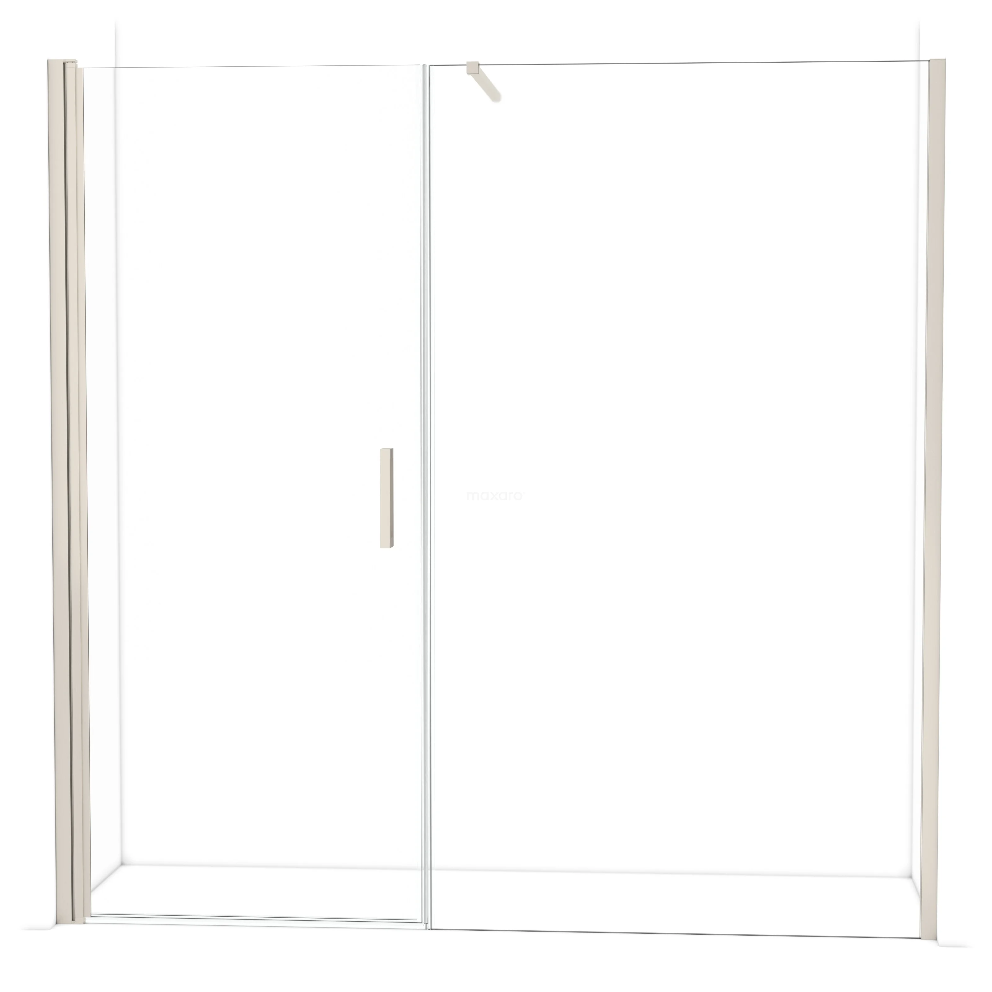 De douchedeur beschikt over een verstelbaarheid, waardoor deze een minimale en maximale afmeting heeft. De minimale en maximale afmeting van een douche met muurprofiel wordt gemeten inclusief het muurprofiel. De minimale en maximale afmeting van een douche met tweepuntsbevestiging wordt gemeten inclusief het glas.