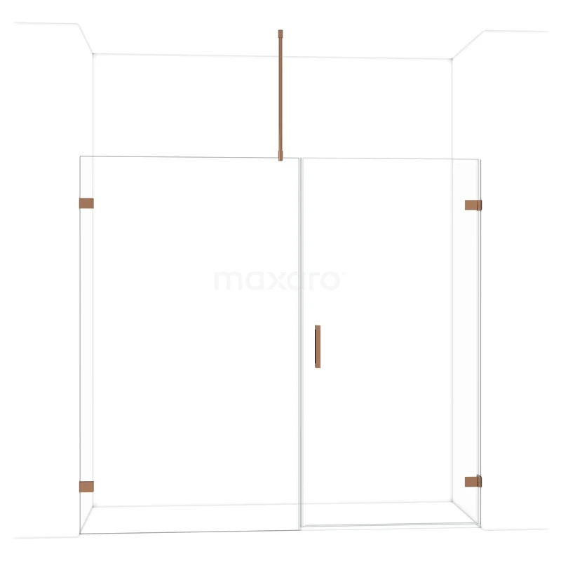 Diamond Douchedeur | 215 cm Glanzend koper Helder glas Draaideur