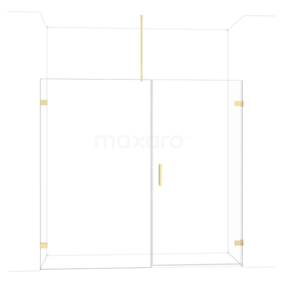 Diamond Douchedeur | 215 cm Glanzend lichtgoud Helder glas Draaideur