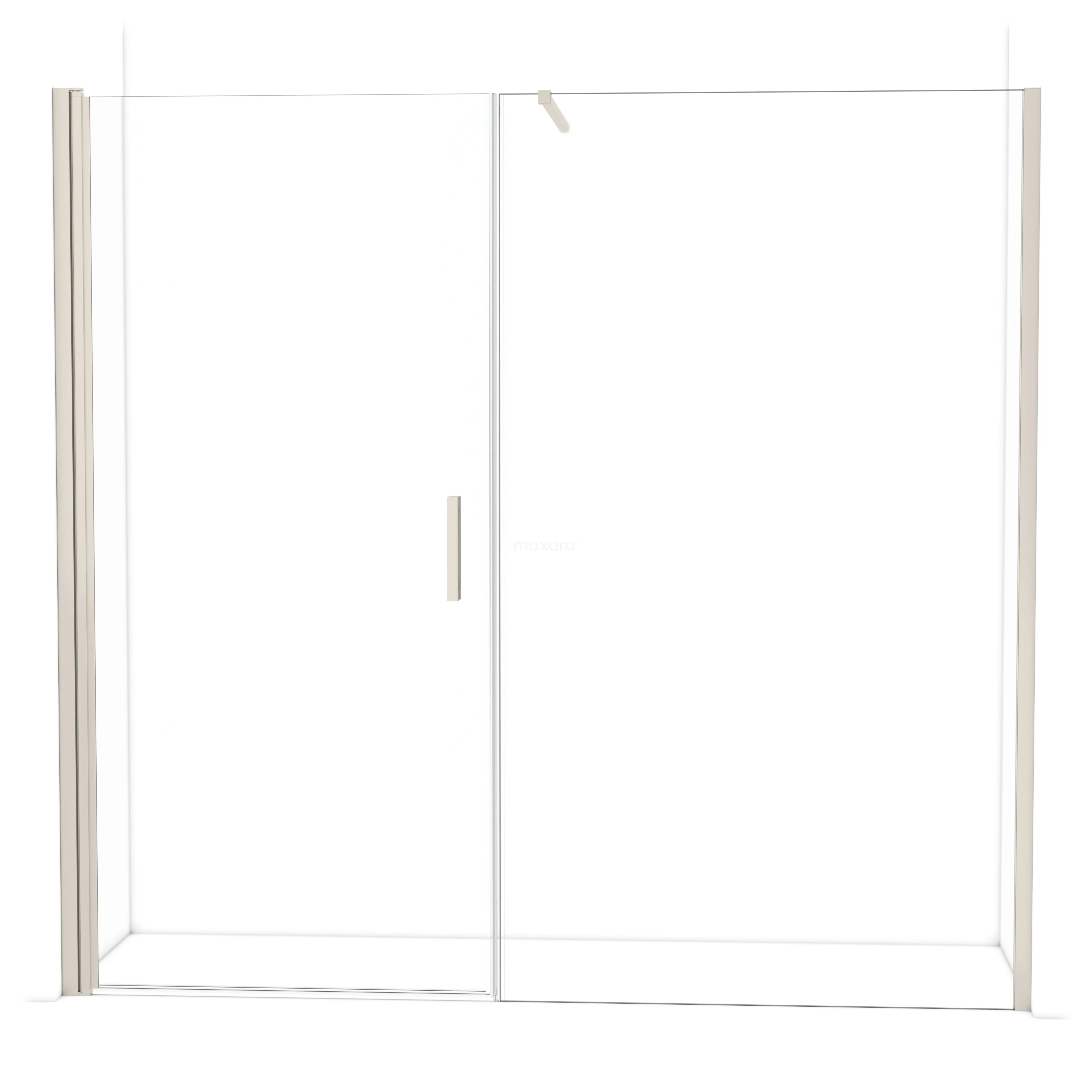 De douchedeur beschikt over een verstelbaarheid, waardoor deze een minimale en maximale afmeting heeft. De minimale en maximale afmeting van een douche met muurprofiel wordt gemeten inclusief het muurprofiel. De minimale en maximale afmeting van een douche met tweepuntsbevestiging wordt gemeten inclusief het glas.