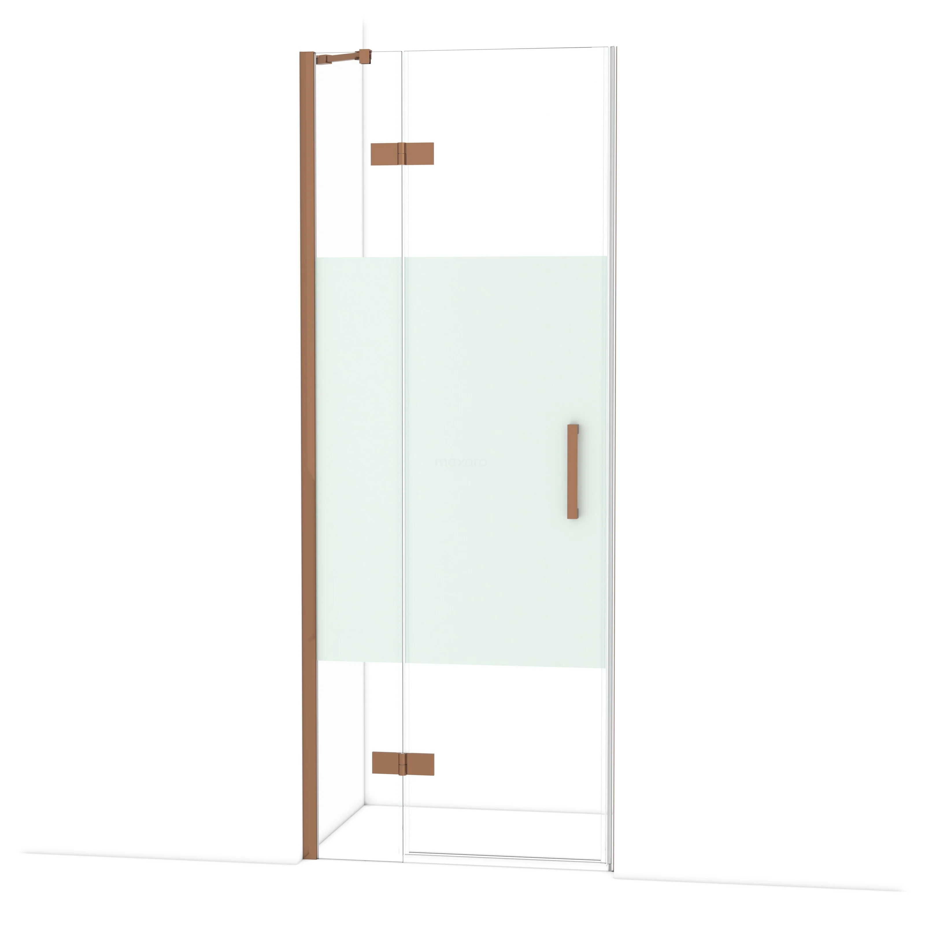 De Diamond-draaideur van 80 cm is ideaal om jouw douchenis af te sluiten. Dit exemplaar heeft een opvallend design van glanzend koper en is voorzien van hoogwaardige scharnieren, muurprofiel en een verticaal handvat. Het helder glas met matte strook zorgt voor meer privacy. Door de verstelbaarheid maak je de douchedeur gemakkelijk passend. De totale breedte is verstelbaar van 79,8 tot en met 81,3 cm.