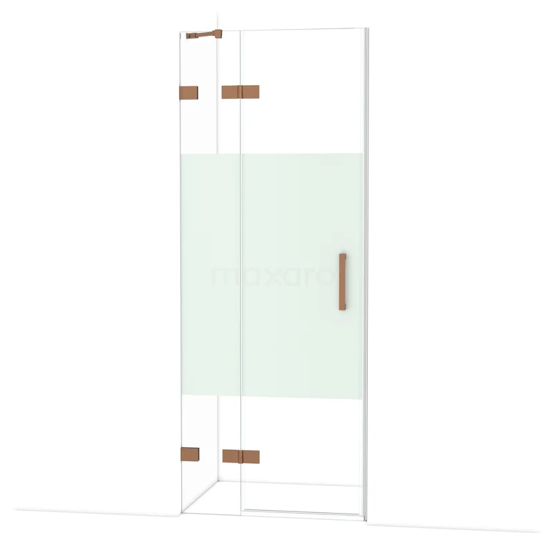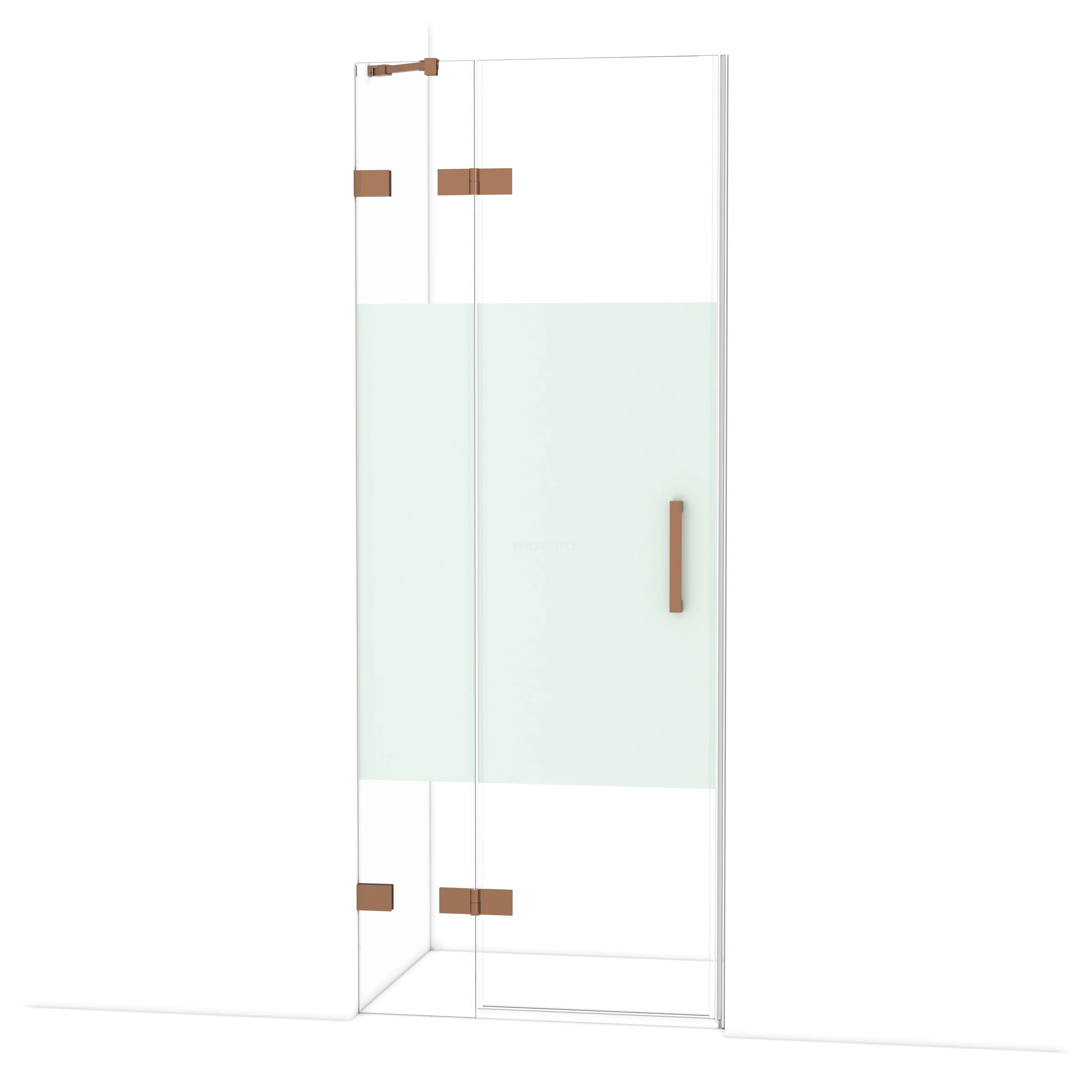 De Diamond-draaideur van 80 cm is ideaal om jouw douchenis af te sluiten. Dit exemplaar heeft een opvallend design van glanzend koper en is voorzien van hoogwaardige scharnieren, tweepuntsbevestiging en een verticaal handvat. Het helder glas met matte strook zorgt voor meer privacy. Door de verstelbaarheid maak je de douchedeur gemakkelijk passend. De totale breedte is verstelbaar van 79,7 tot en met 80 cm.