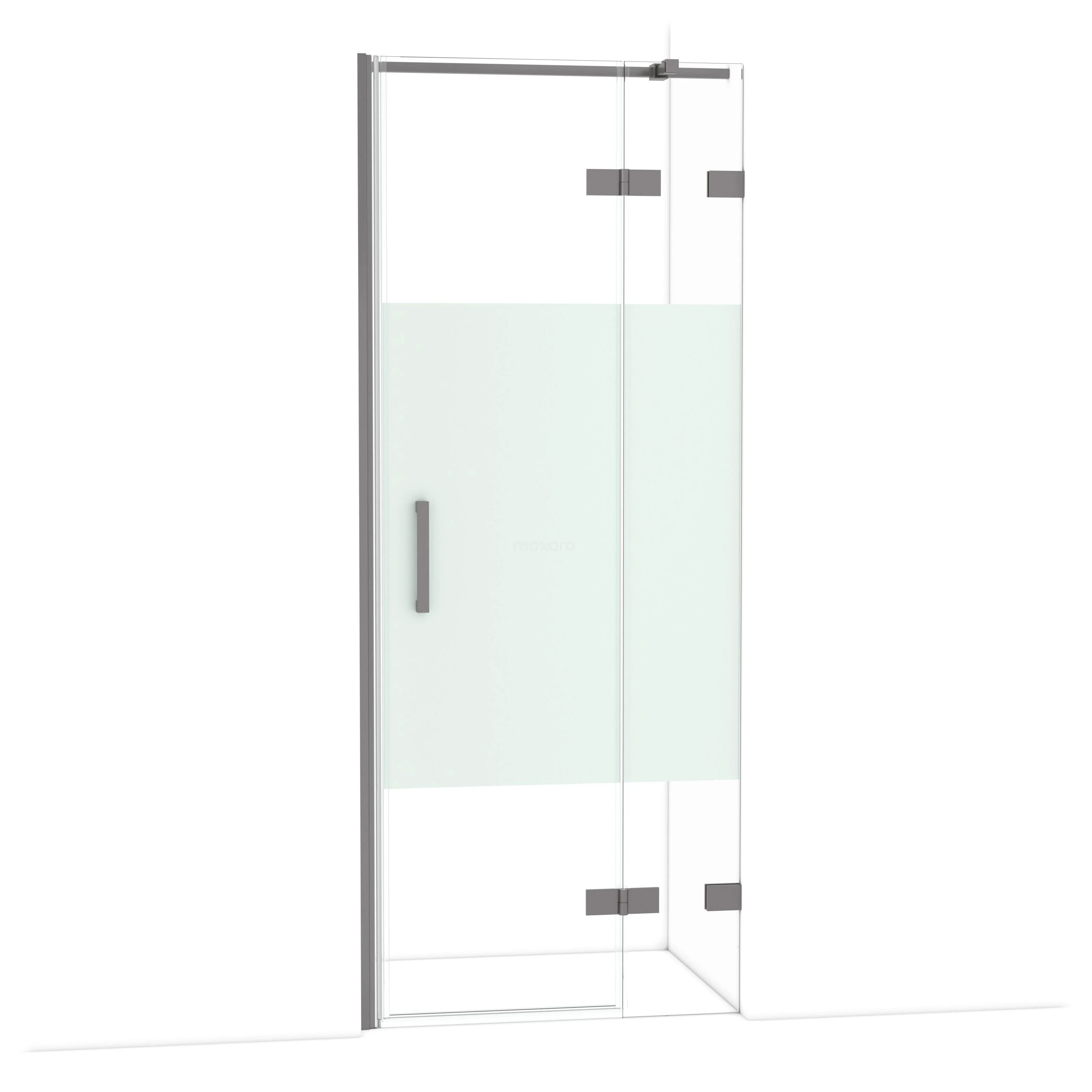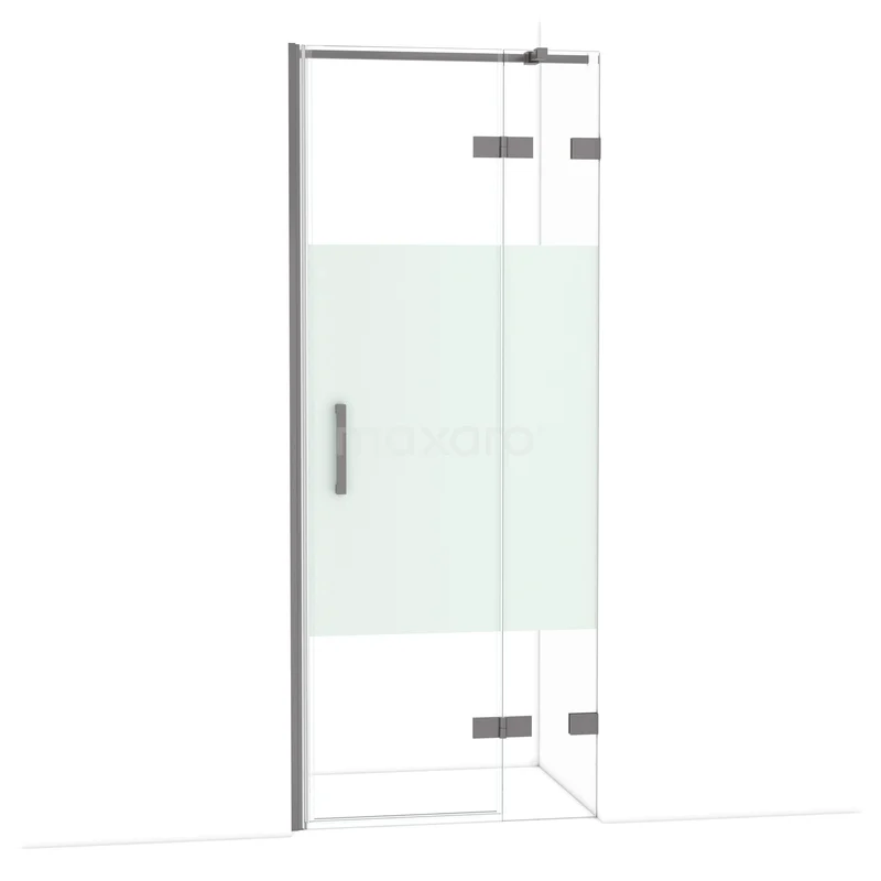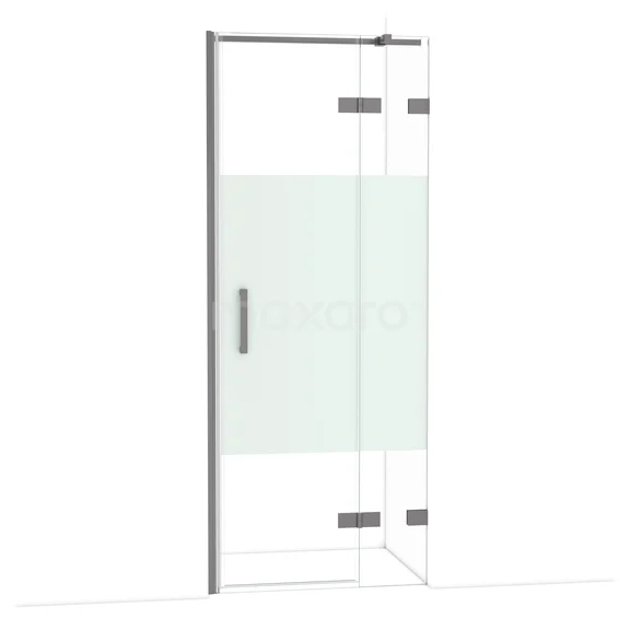Diamond Douchedeur | 80 cm Zwart metaal Helder met matte strook Draaideur