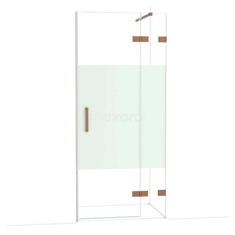 De Diamond-draaideur van 90 cm is ideaal om jouw douchenis af te sluiten. Dit exemplaar heeft een opvallend design van glanzend koper en is voorzien van hoogwaardige scharnieren, tweepuntsbevestiging en een verticaal handvat. Het helder glas met matte strook zorgt voor meer privacy. Door de verstelbaarheid maak je de douchedeur gemakkelijk passend. De totale breedte is verstelbaar van 89,7 tot en met 90 cm.