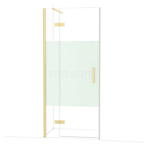 Diamond Douchedeur | 90 cm Glanzend lichtgoud Helder met matte strook Draaideur