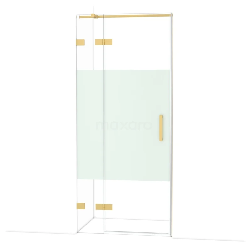 De Diamond-draaideur van 90 cm is ideaal om jouw douchenis af te sluiten. Dit exemplaar heeft een luxe design van goud en is voorzien van hoogwaardige scharnieren, tweepuntsbevestiging en een verticaal handvat. Het helder glas met matte strook zorgt voor meer privacy. Door de verstelbaarheid maak je de douchedeur gemakkelijk passend. De totale breedte is verstelbaar van 89,7 tot en met 90 cm.
