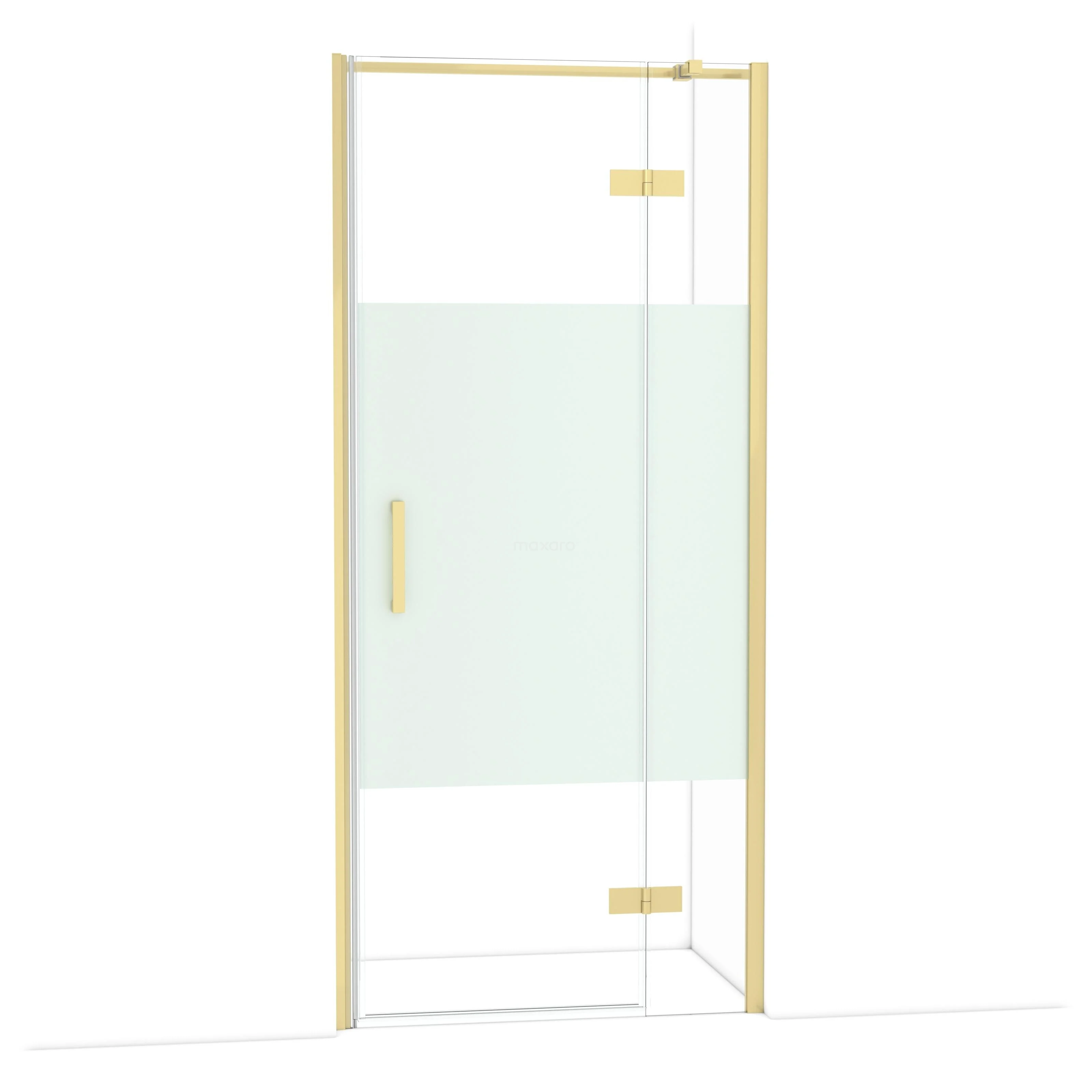Diamond Douchedeur | 90 cm Lichtgoud Helder met matte strook Draaideur