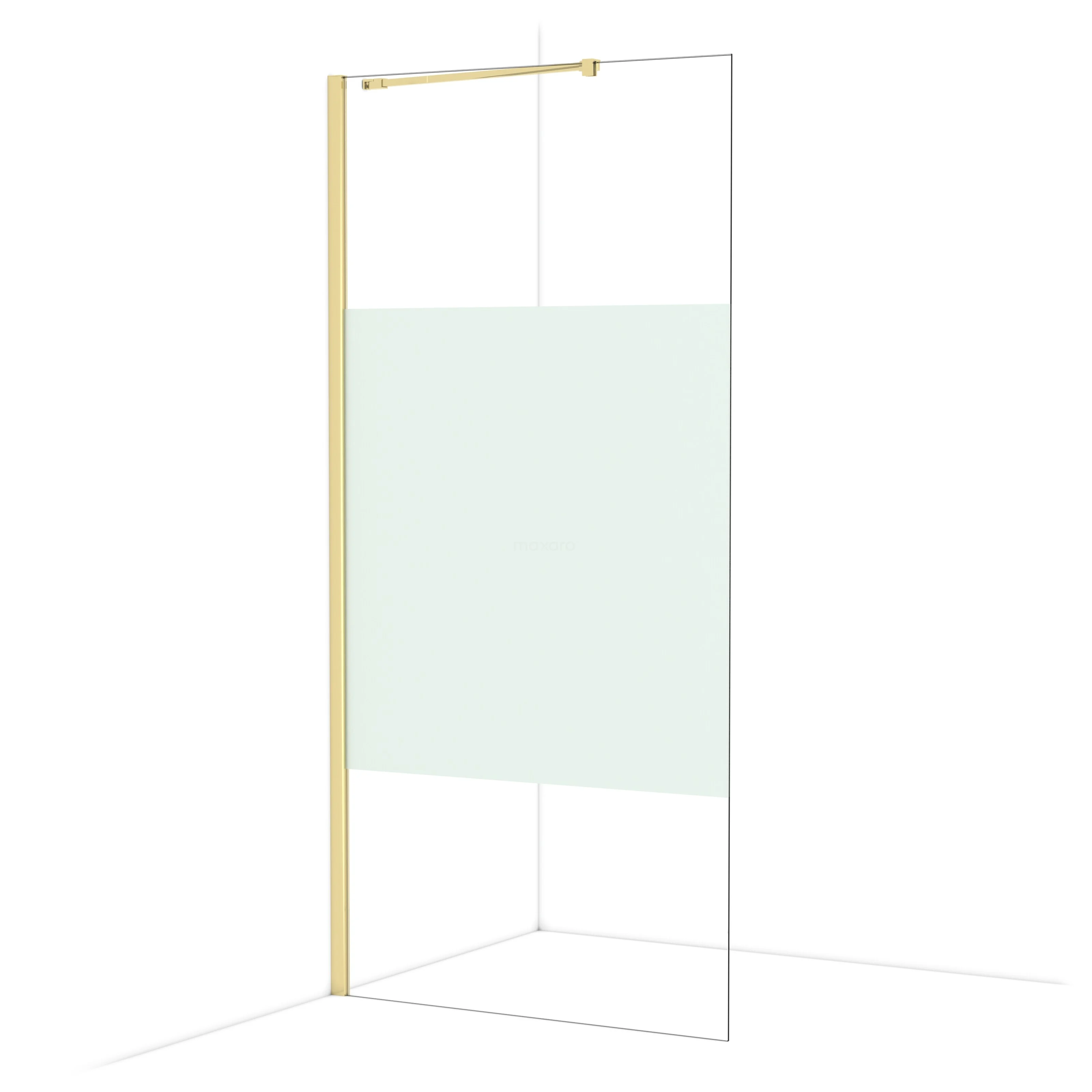 Diamond Inloopdouche | 100 cm Glanzend lichtgoud Helder met matte strook Vaste wand