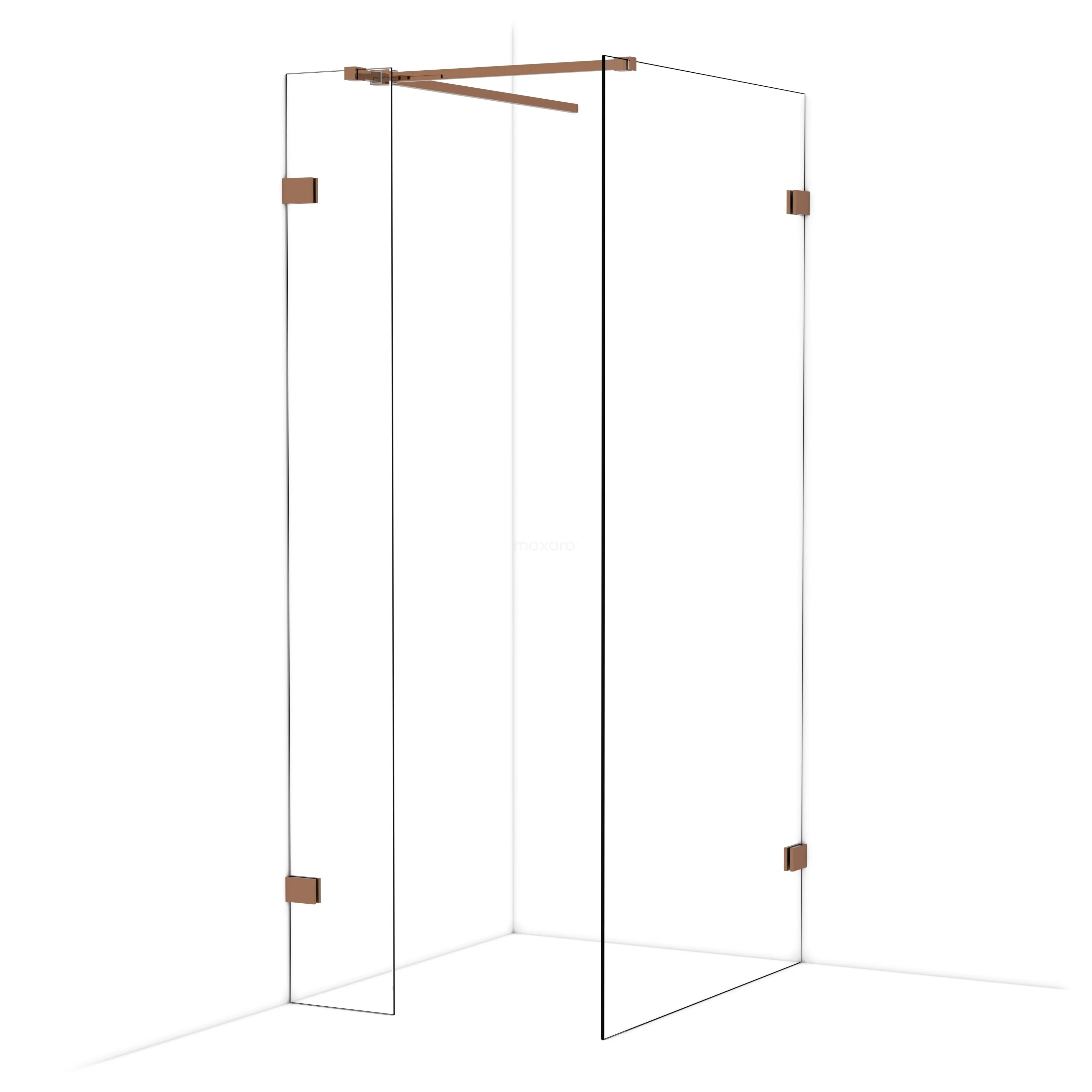 Diamond Inloopdouche | 100x30 cm Glanzend koper Helder glas 2 vaste wanden