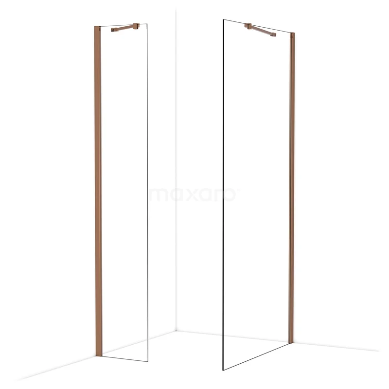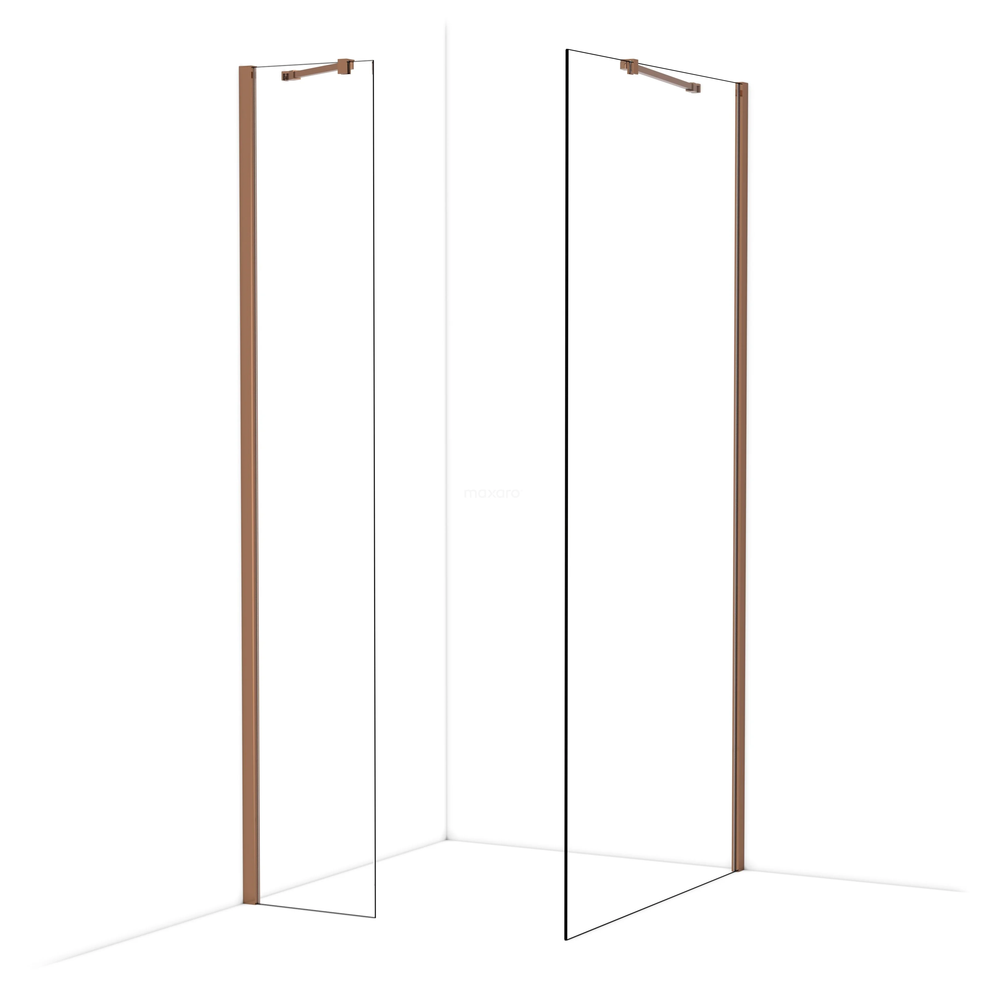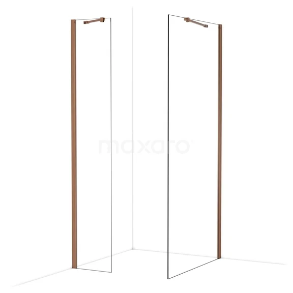 Diamond Inloopdouche | 100x40 cm Glanzend koper Helder glas 2 vaste wanden