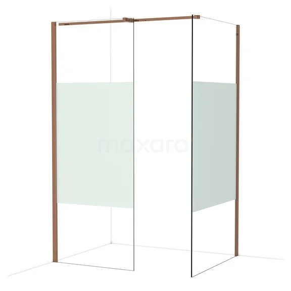 Diamond Inloopdouche | 100x80 cm Glanzend koper Helder met matte strook 2 vaste wanden