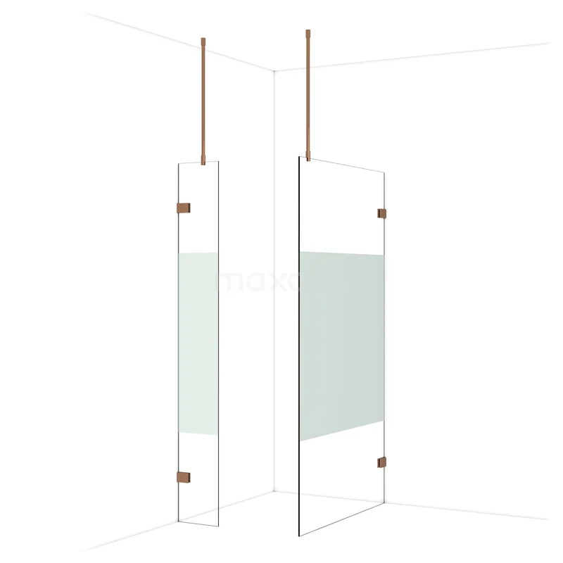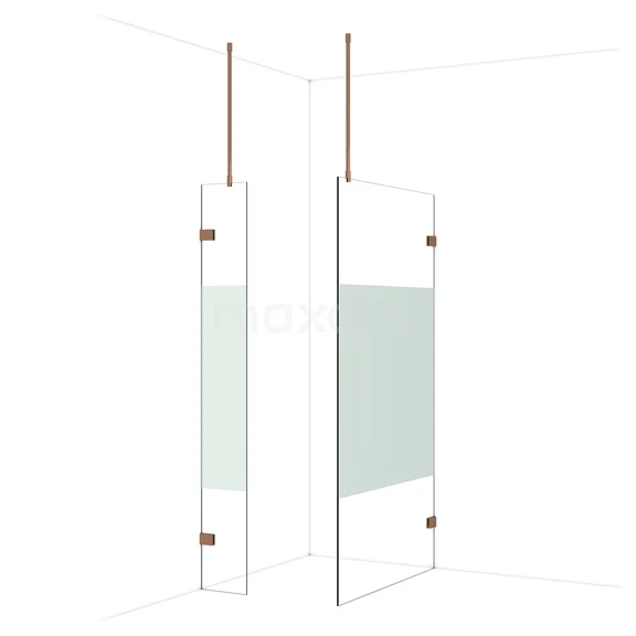 Diamond Inloopdouche | 110x30 cm Glanzend koper Helder met matte strook 2 vaste wanden