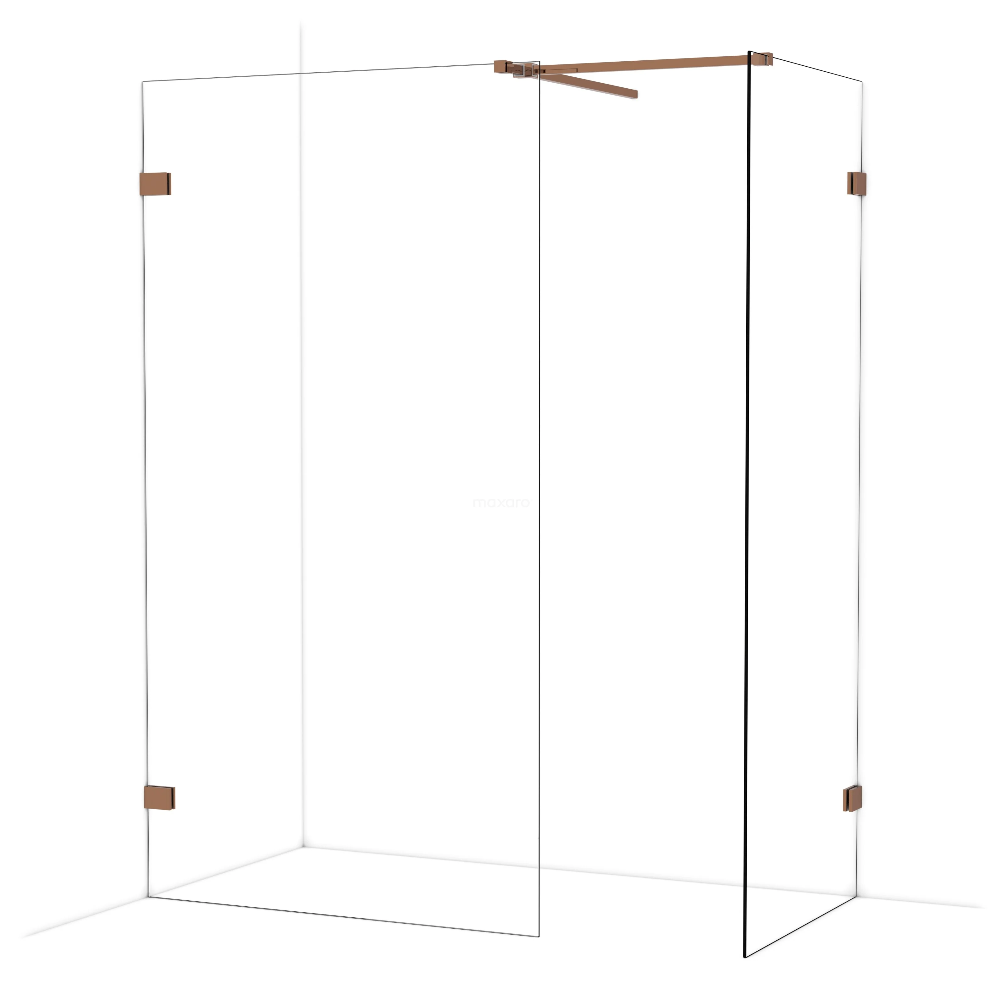 Diamond Inloopdouche | 110x80 cm Glanzend koper Helder glas 2 vaste wanden