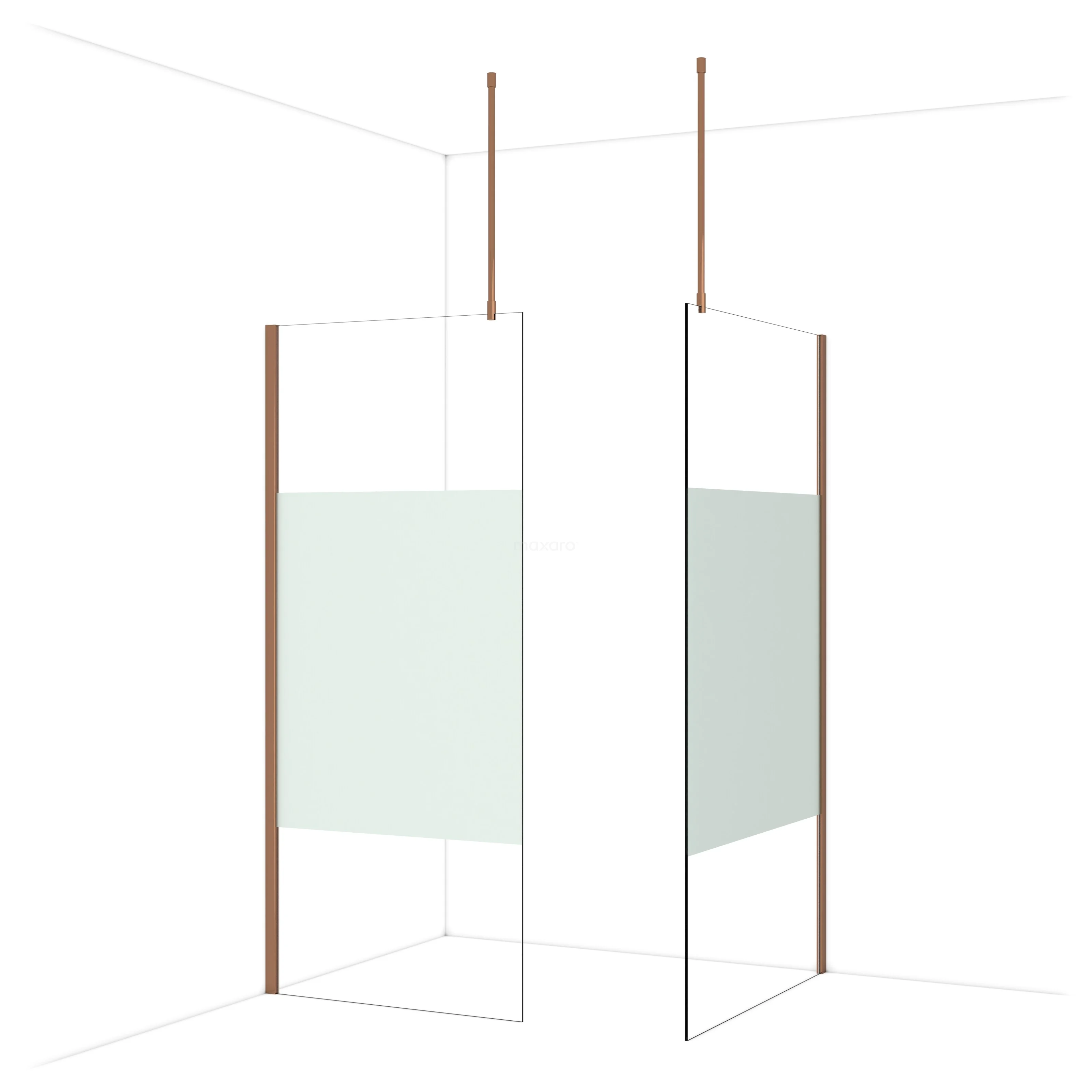 Diamond Inloopdouche | 110x90 cm Glanzend koper Helder met matte strook 2 vaste wanden
