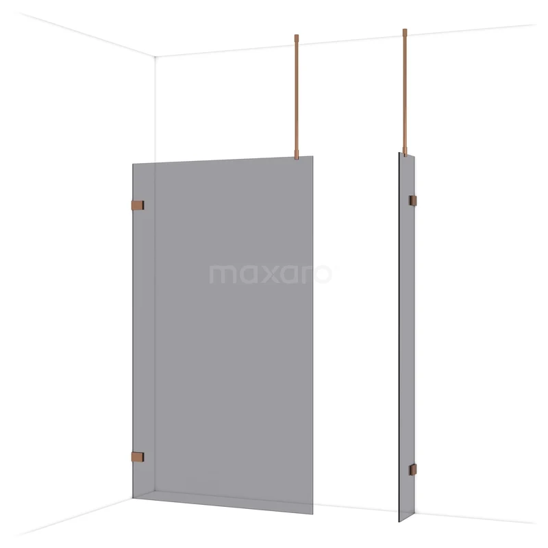 Diamond Inloopdouche | 120x30 cm Glanzend koper Rookglas 2 vaste wanden
