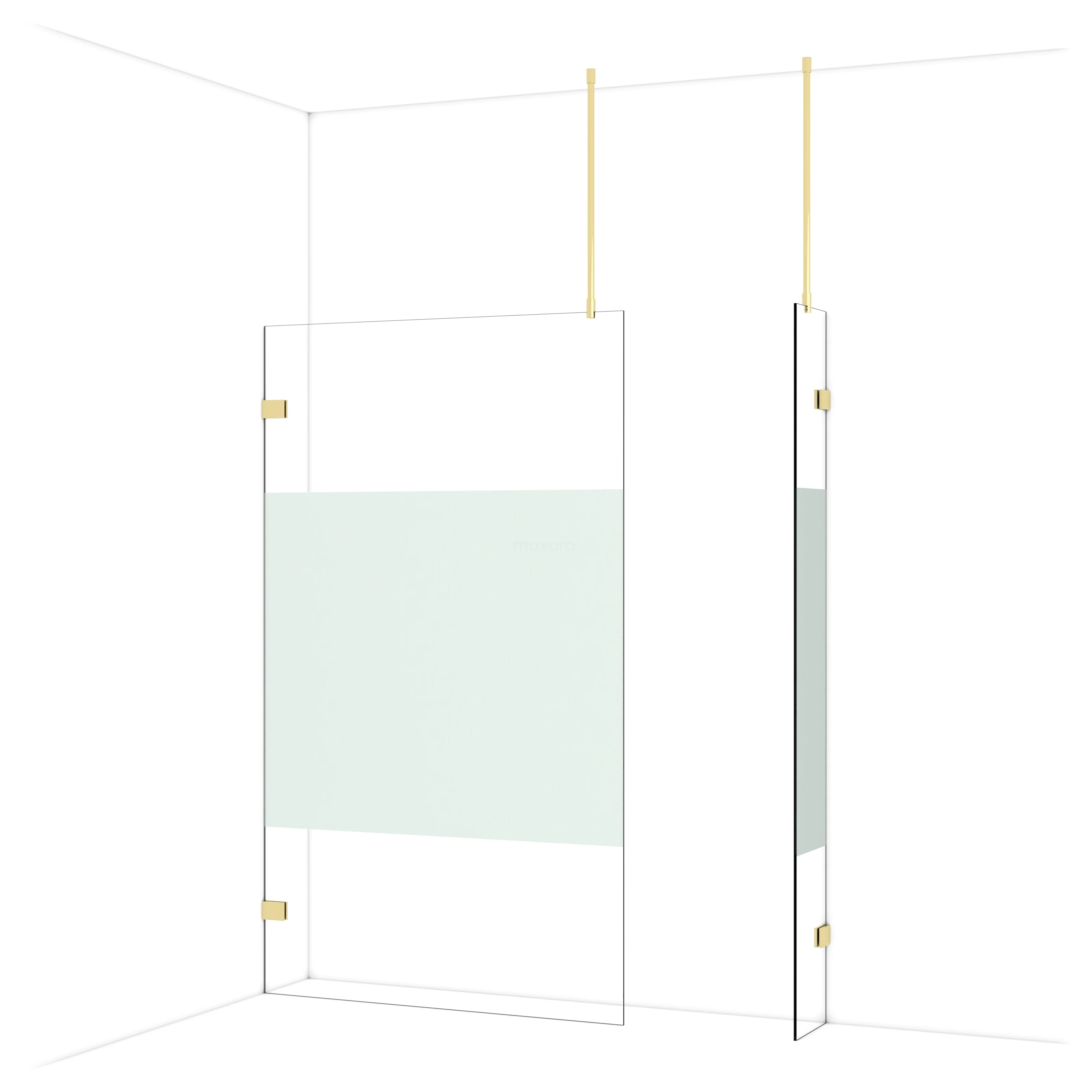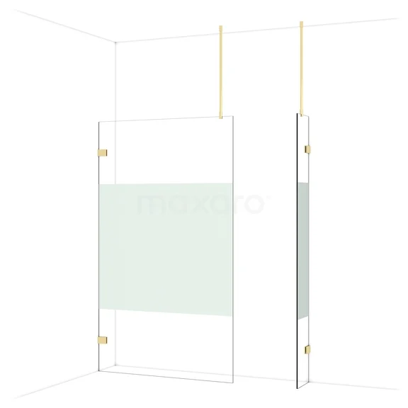 Diamond Inloopdouche | 120x30 cm Glanzend lichtgoud Helder met matte strook 2 vaste wanden