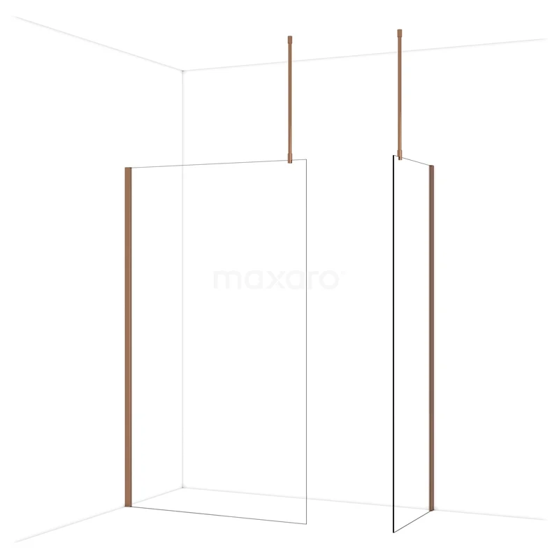 Diamond Inloopdouche | 120x70 cm Glanzend koper Helder glas 2 vaste wanden