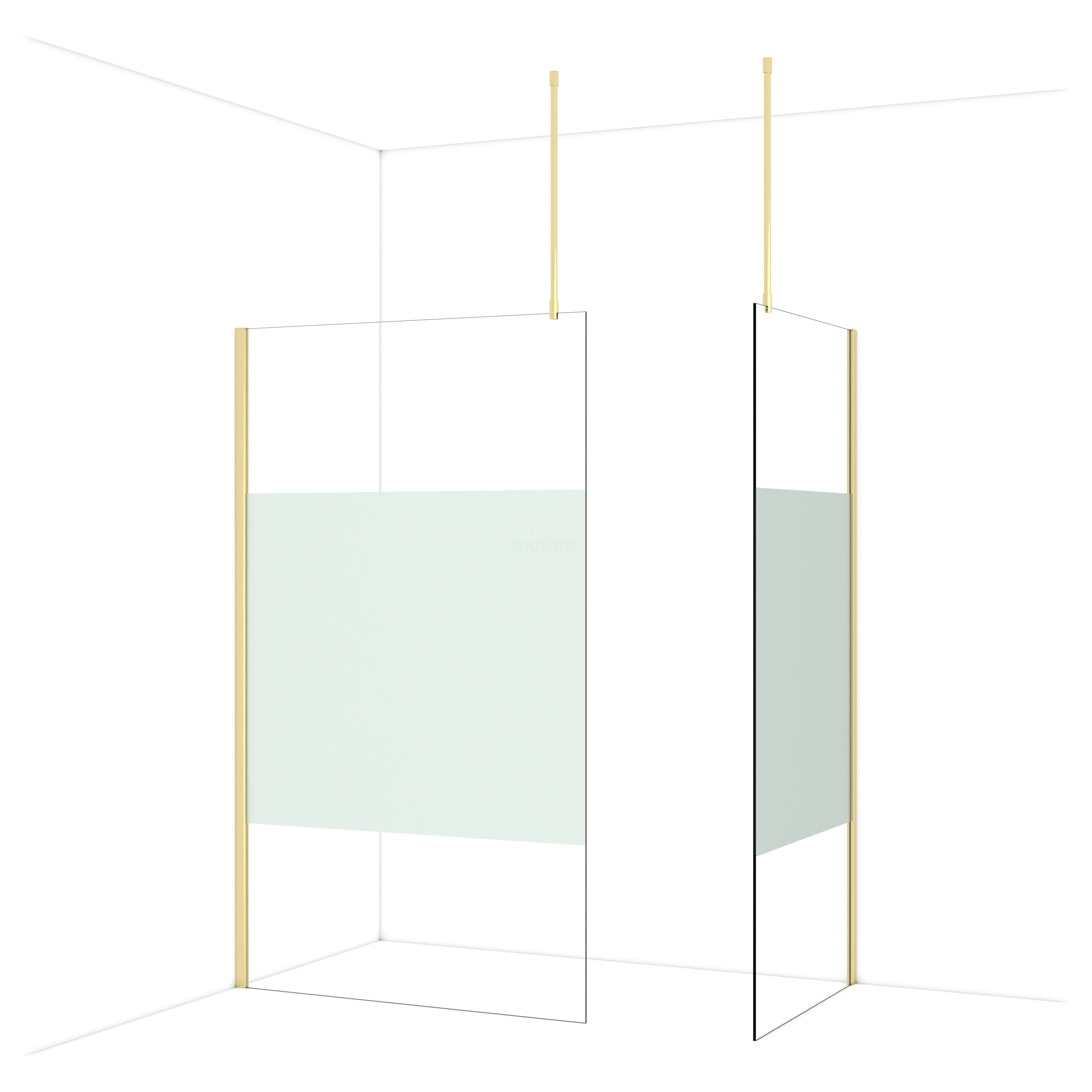 Diamond Inloopdouche | 120x90 cm Glanzend lichtgoud Helder met matte strook 2 vaste wanden