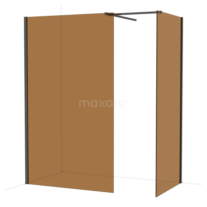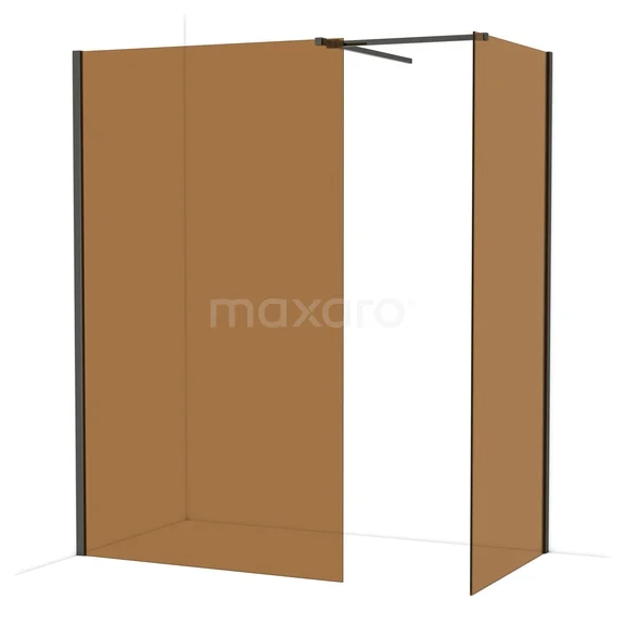 Diamond Inloopdouche | 120x90 cm Zwart chroom Bronsglas 2 vaste wanden