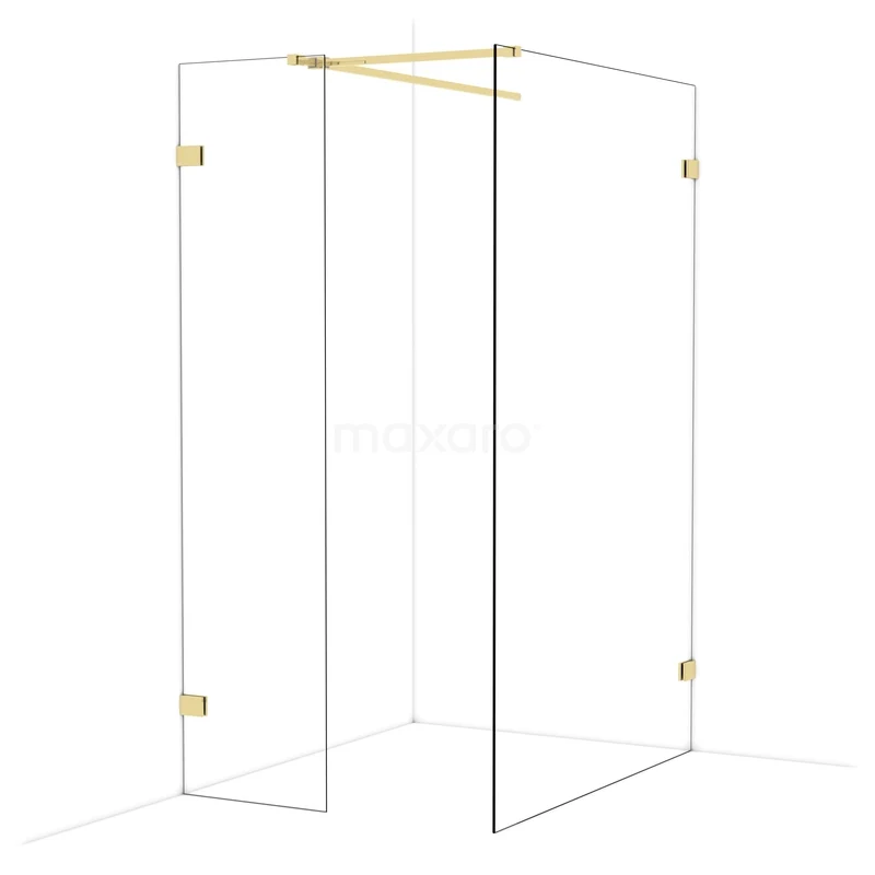 Diamond Inloopdouche | 130x50 cm Glanzend lichtgoud Helder glas 2 vaste wanden