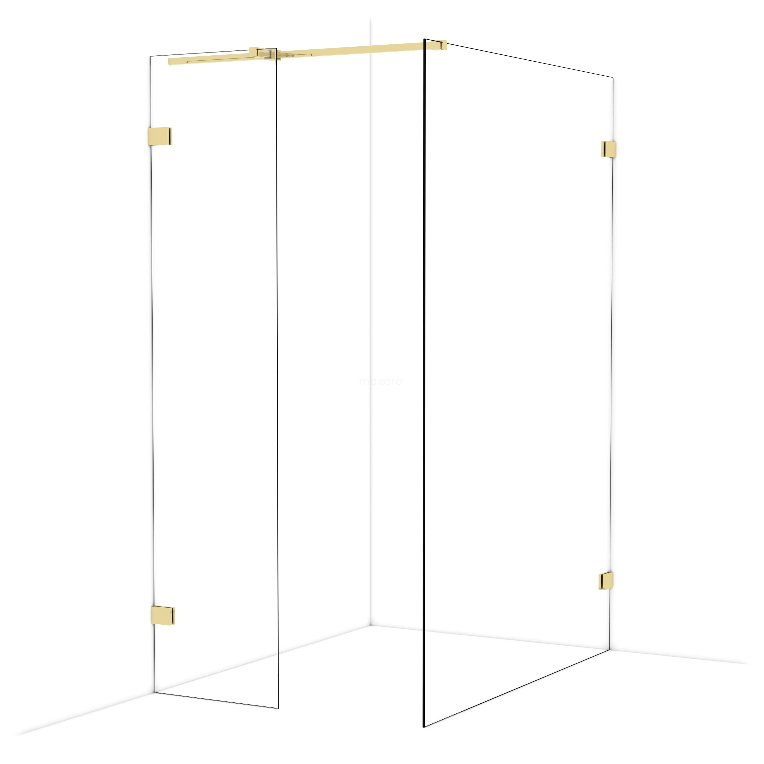Diamond Inloopdouche | 140x50 cm Glanzend lichtgoud Helder glas 2 vaste wanden